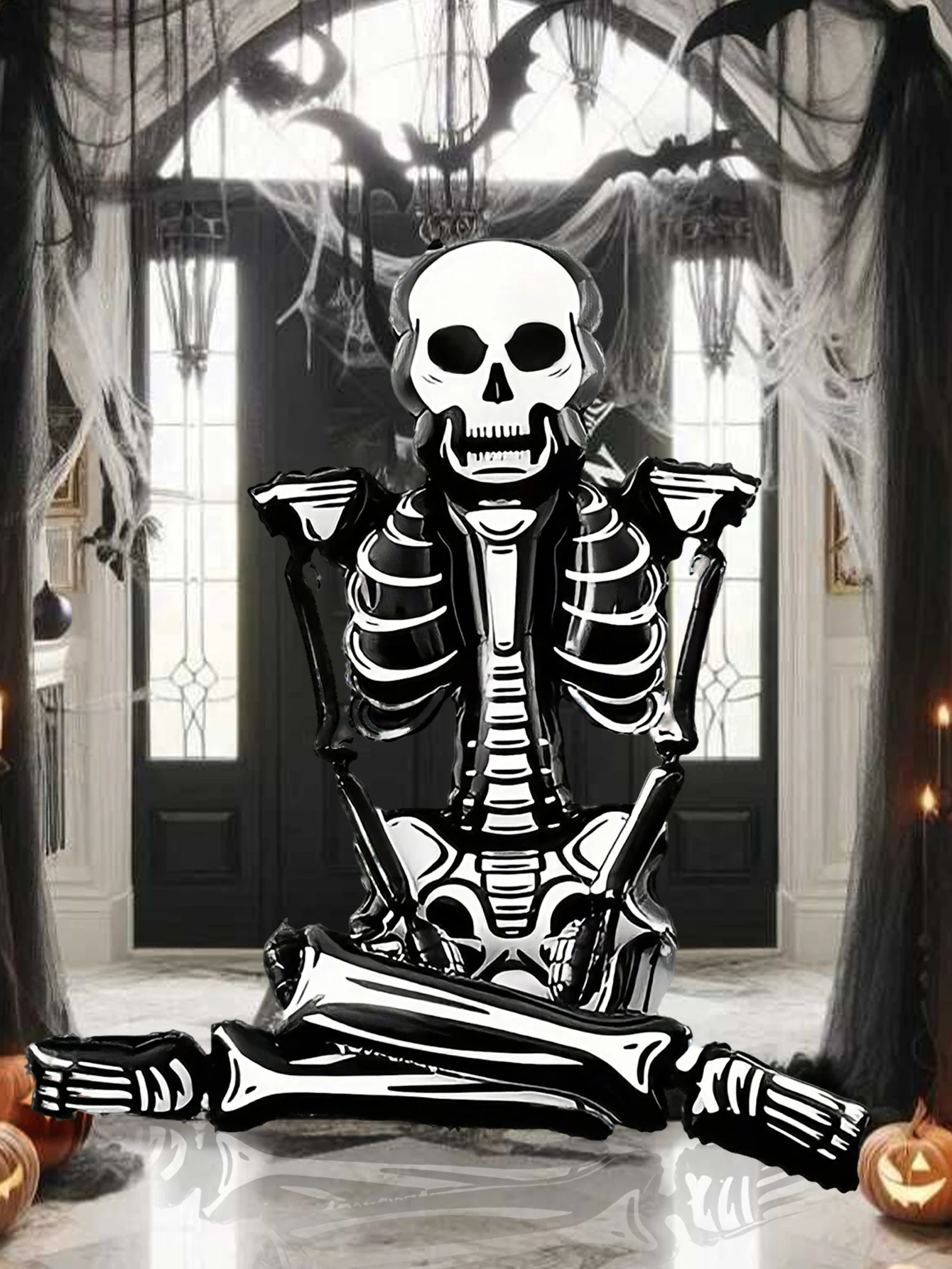 1pc Extra Tall Giant Skeleton Balloon, Halloween Skeleton Decoration, Skeleton Shape Foil Balloon, Suitable for Halloween Decoration, Ghost Party, Day of the Dead Horror Party Decorations, Halloween Interior Decoration, Halloween Theme Party, Haunted House, Holiday Party Atmosphere Supplies, Halloween Birthday