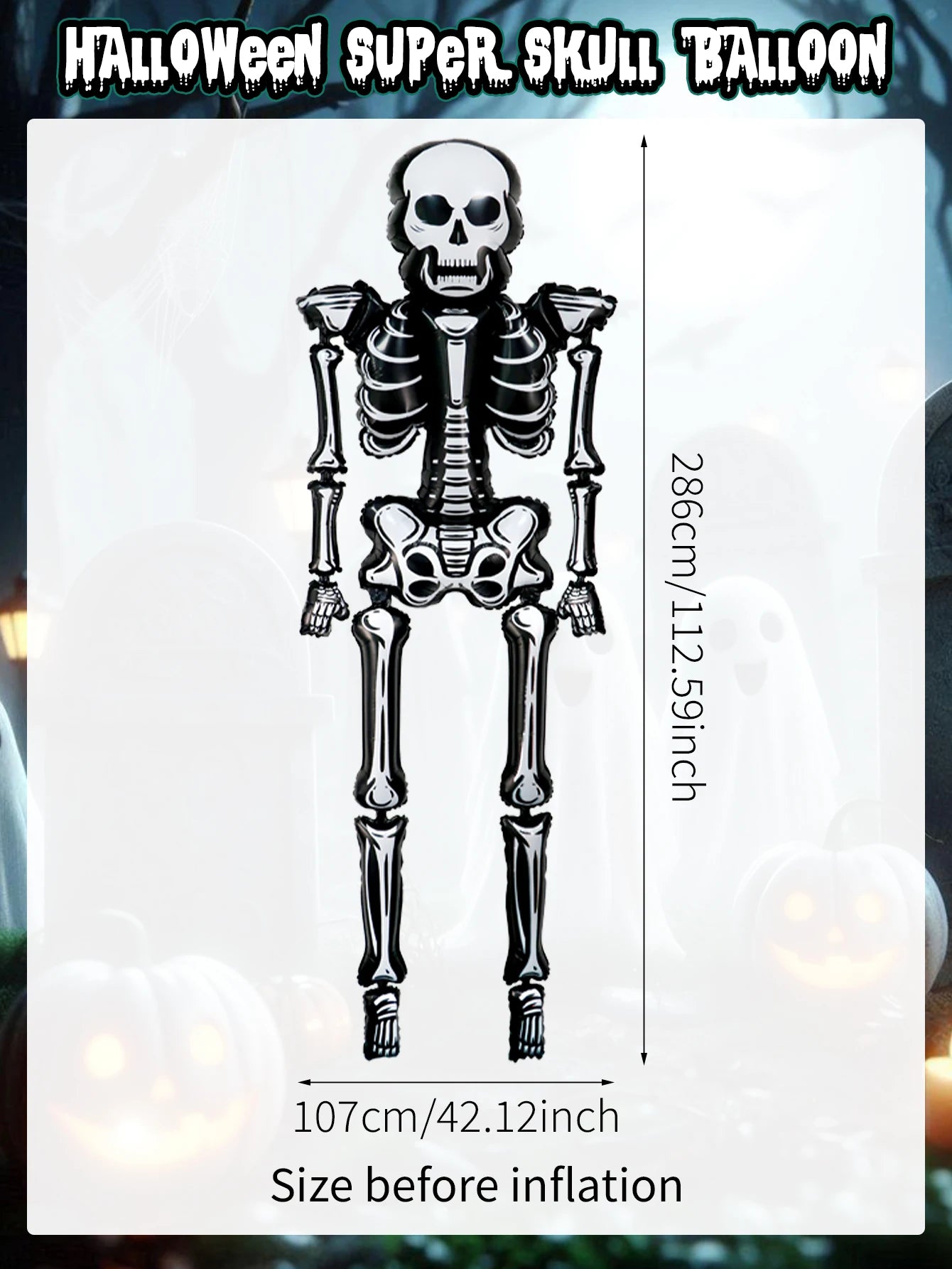 1pc Extra Tall Giant Skull Foil Balloon, Halloween Decoration, Ghost Party, Haunted House, Birthday Horror Atmosphere Decoration