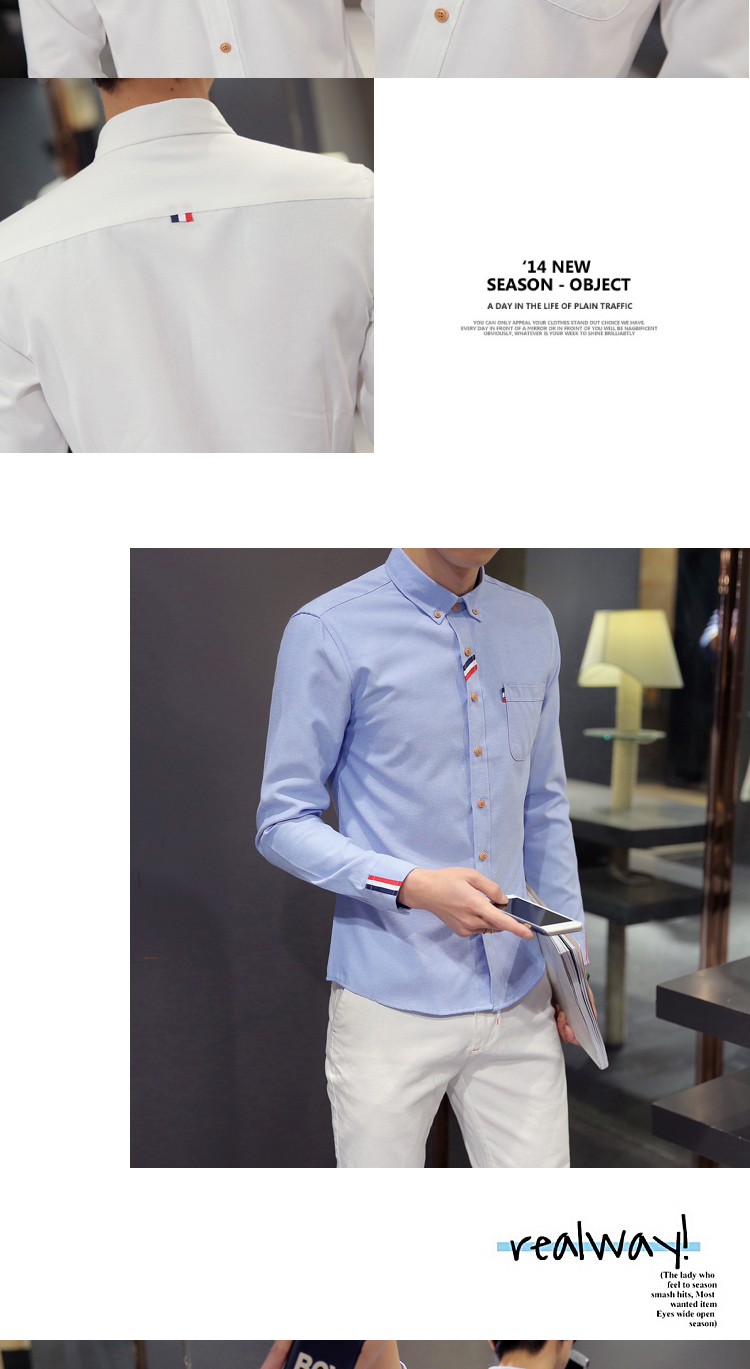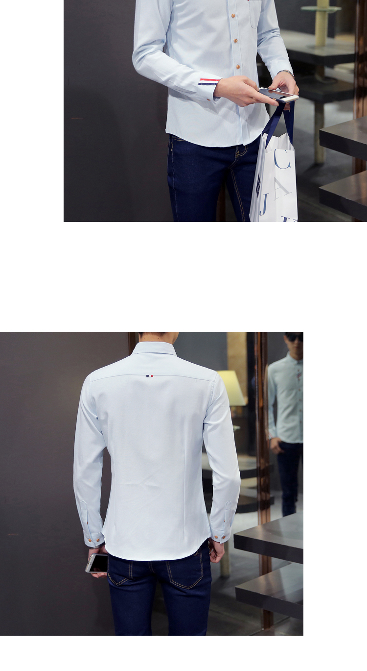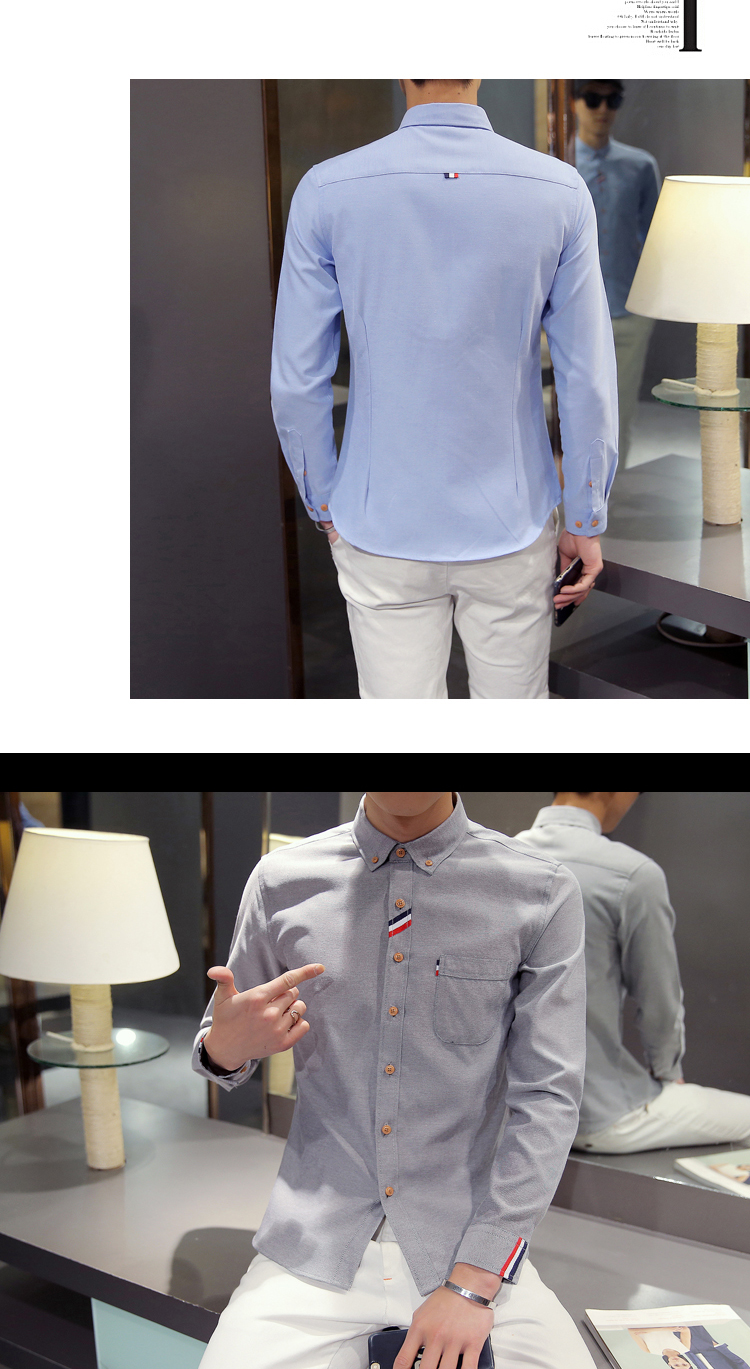 2023 Spring Men's Casual Solid Oxford Dress White Shirt Single Patch Pocket Long Sleeve Regular-fit Button-down Shirts