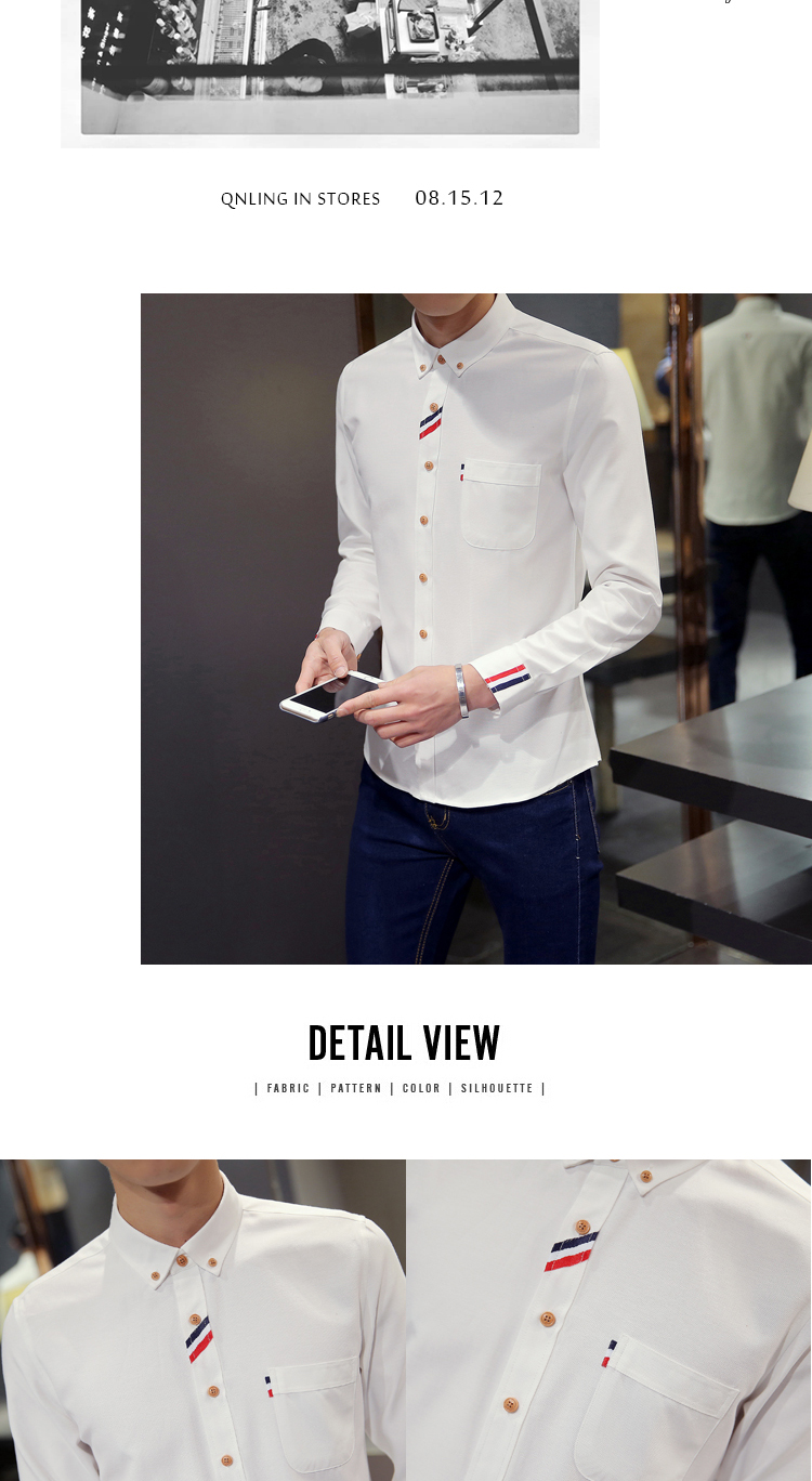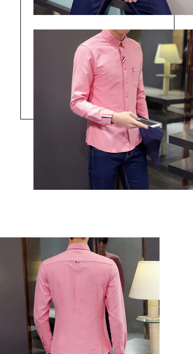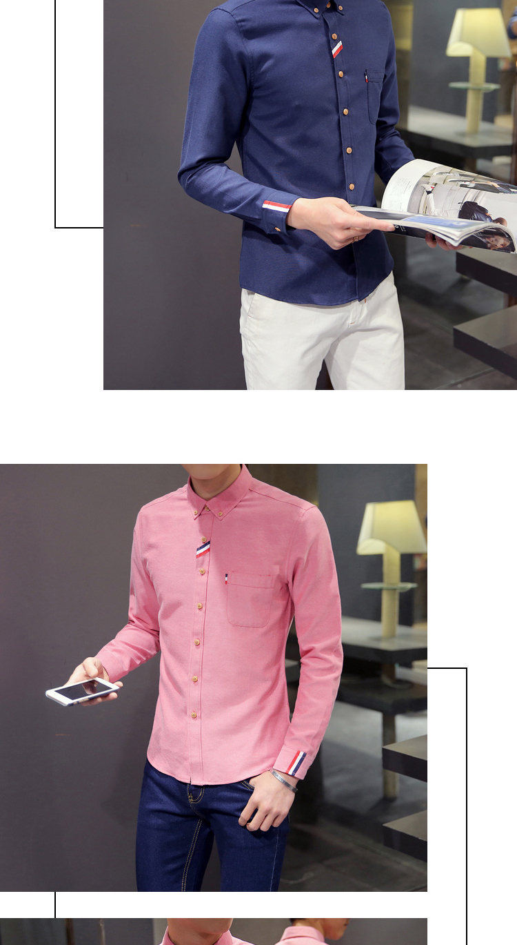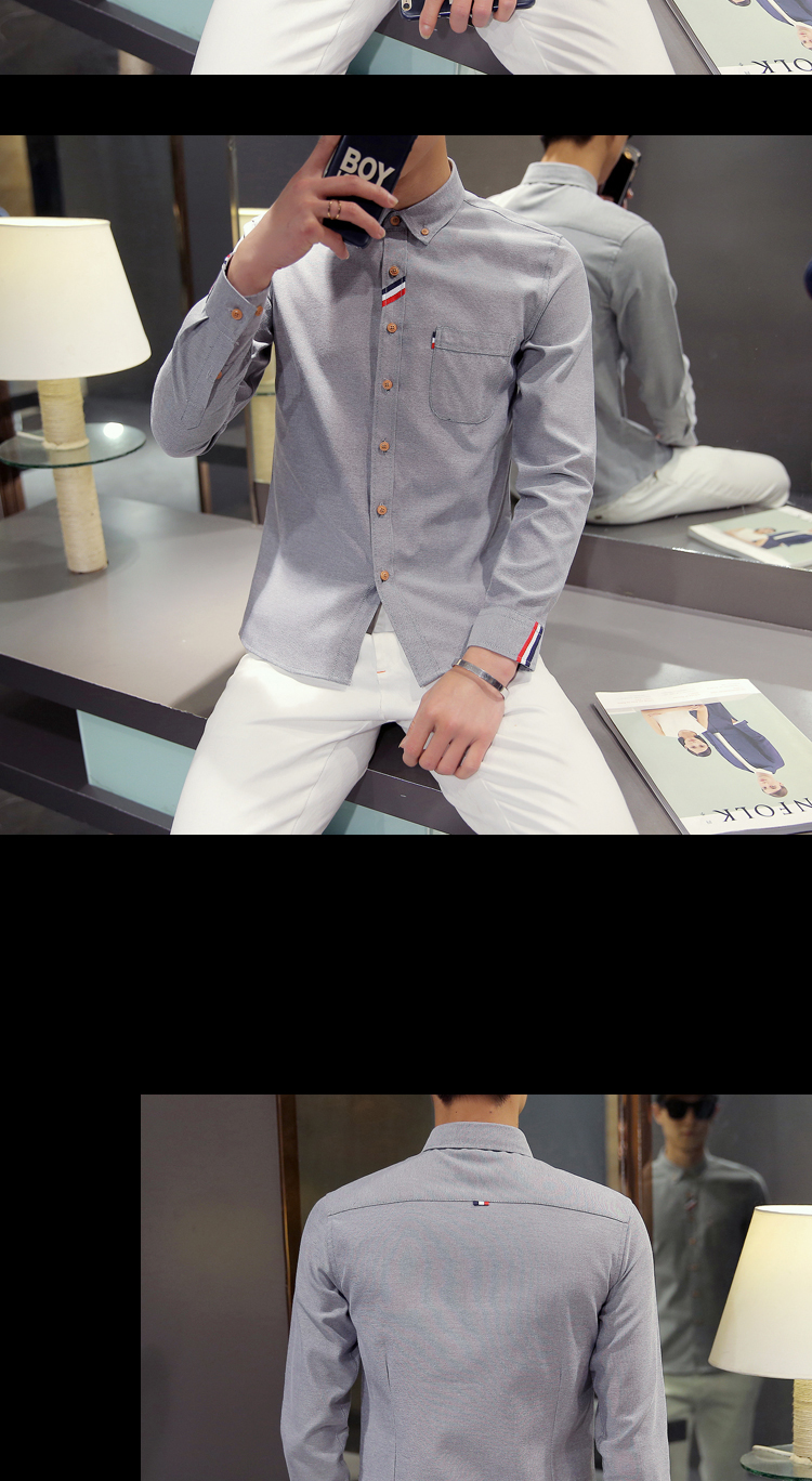 2023 Spring Men's Casual Solid Oxford Dress White Shirt Single Patch Pocket Long Sleeve Regular-fit Button-down Shirts