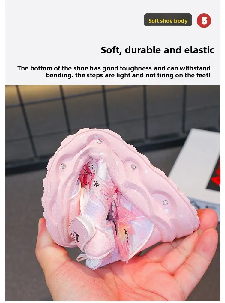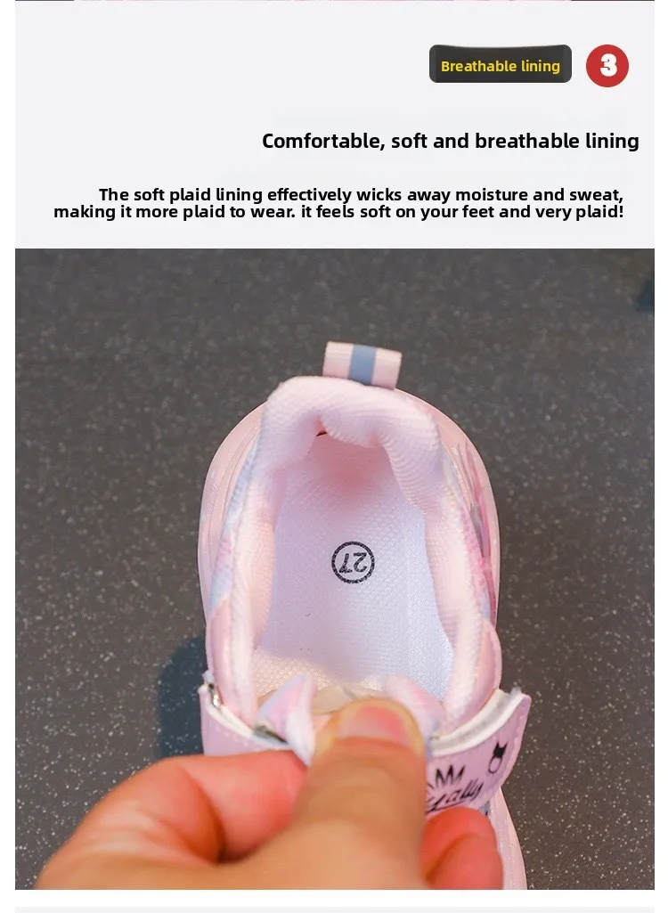 2025 Children's Sports Shoes Led Lights Sneaker Cartoon PU Leather Girls' Pink Children's Running Pink Shoes Size 21-30
