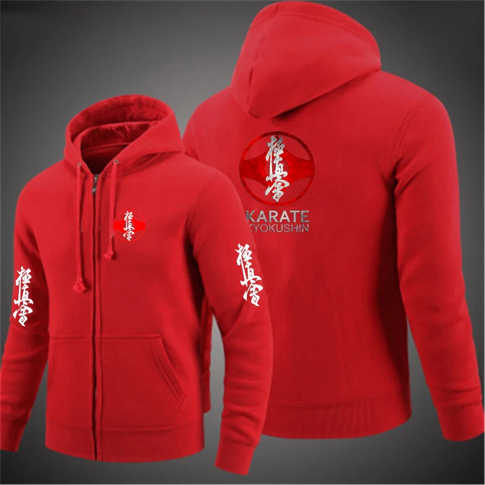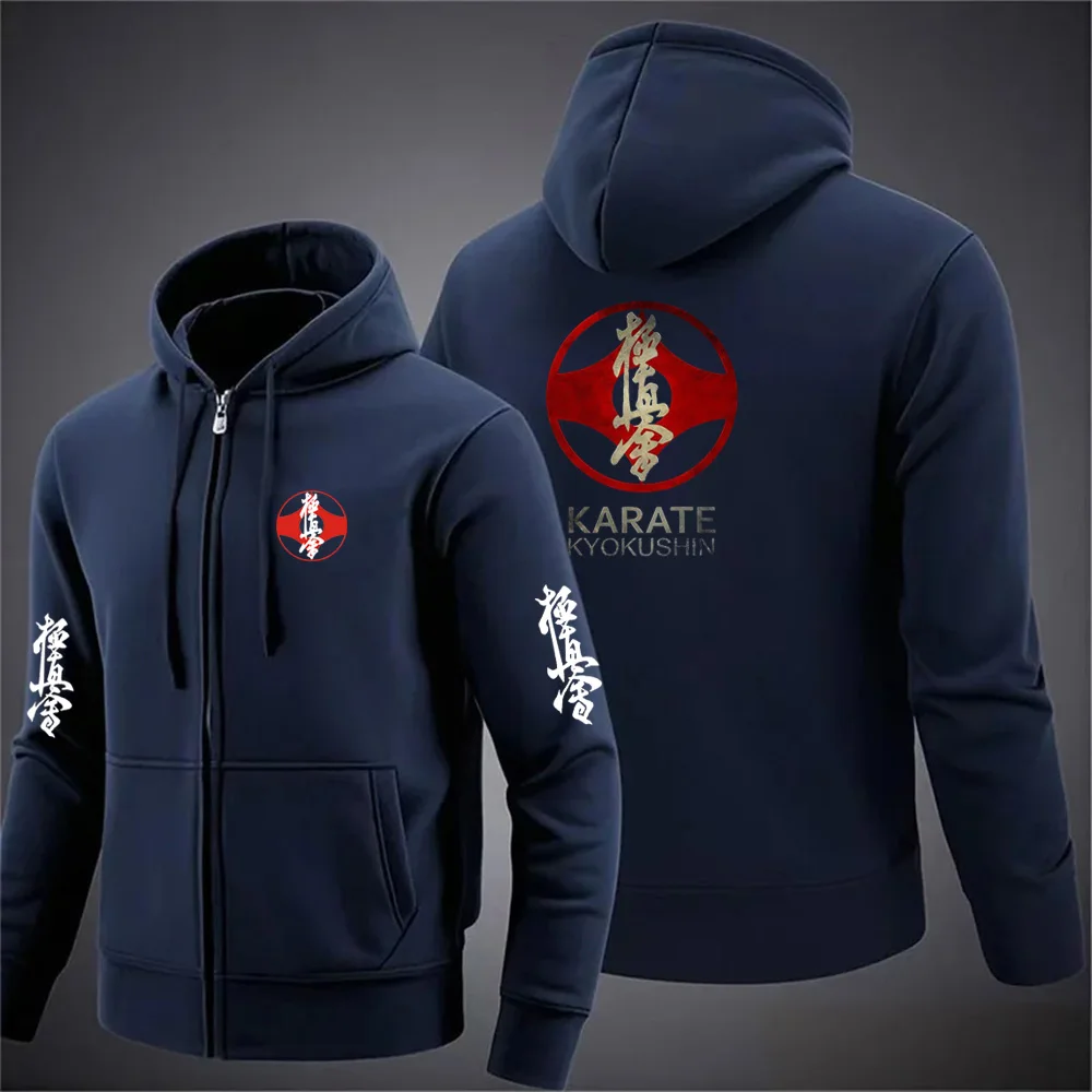 2025 Kyokushin Karate Printed Hooded Long Sleeve Men Jacket Drawstring Zipper Closure Solid Color Casual Sweatshirt Clothing