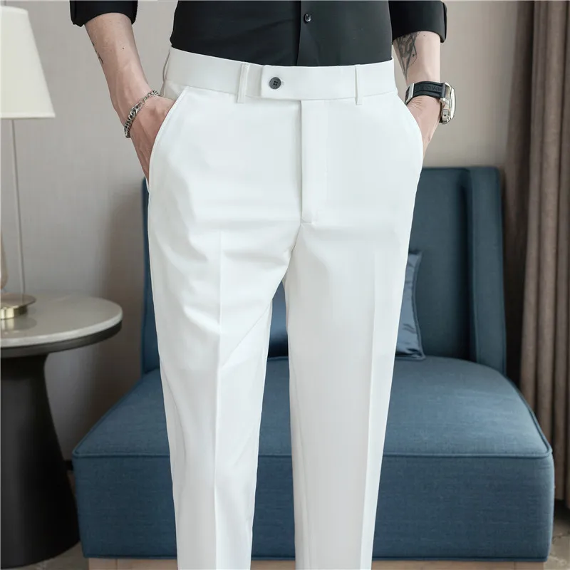 2025 Summer Thin White Elastic Nine Cent Suit Pants for Men,gray Blue Four-side Elastic Comfortable Drape Men's Casual Trousers