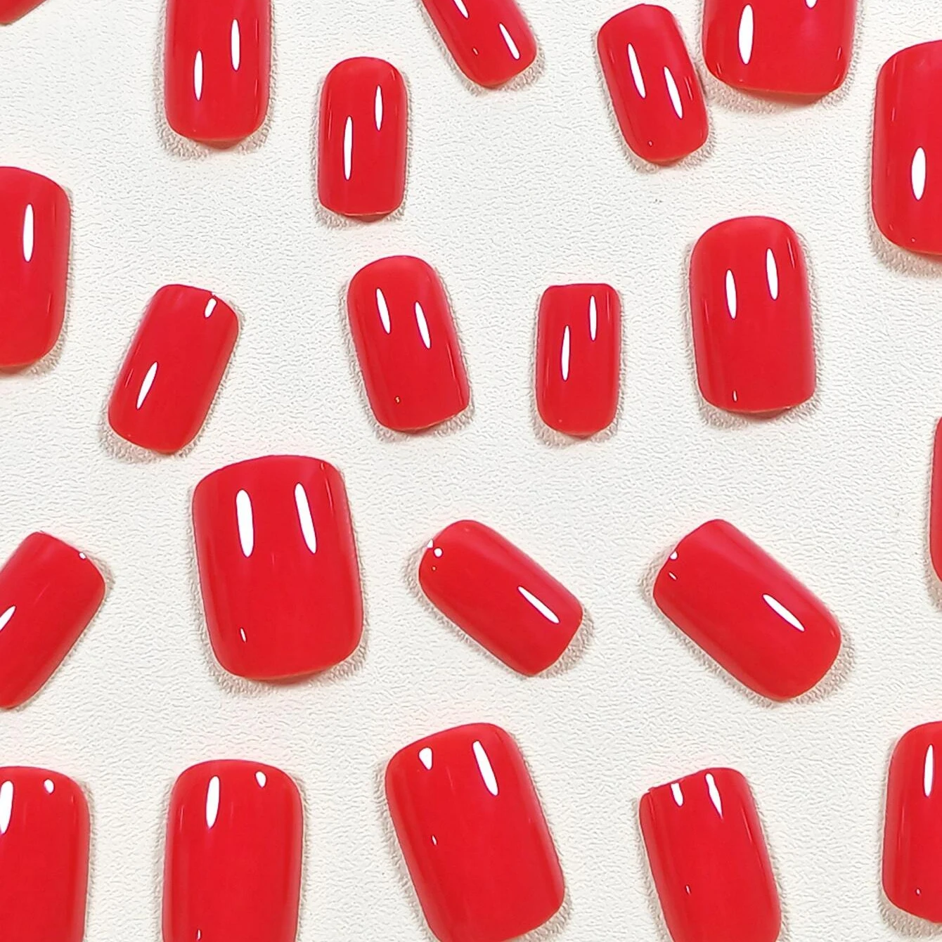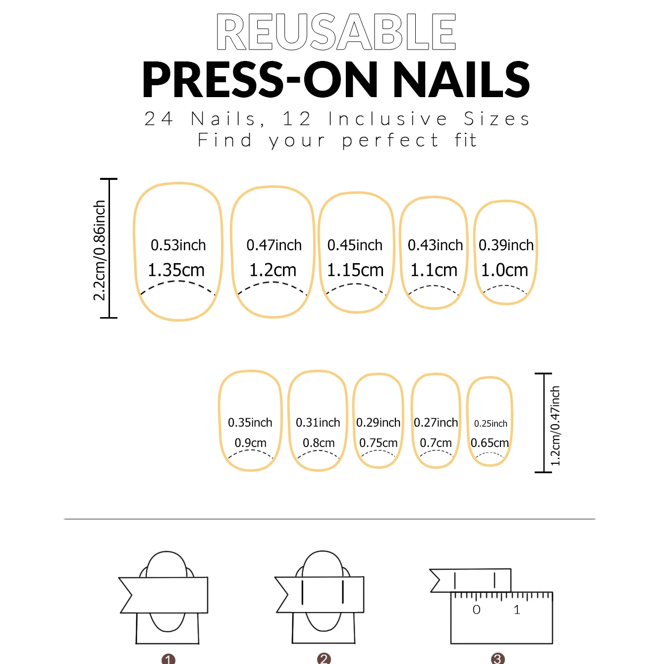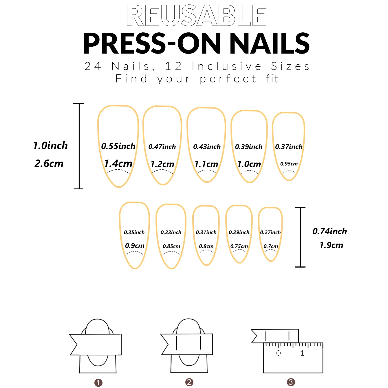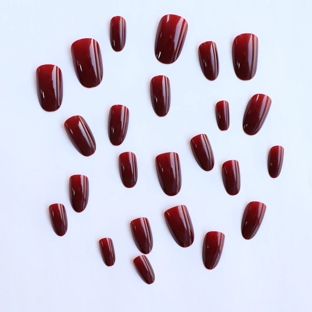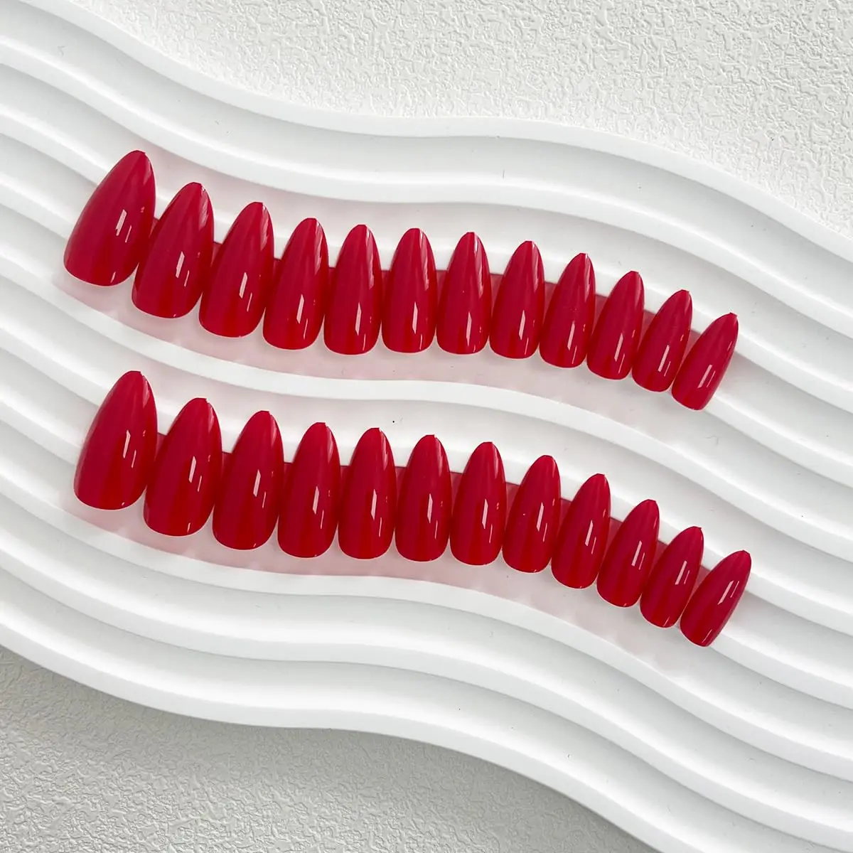 24 PCs Medium-sized Almond French Simple Solid Fake Nails Nails with 1 Jelly Gel and 1 Nail File