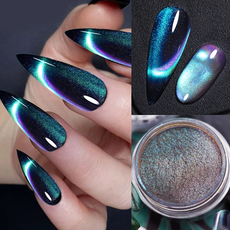 6-Colors Magic Magnetic Cat Eye's Nail Glitter Powder Net1-2g Reflective Effect Cat Eye's Chrome Powder DIY Cat Eye Rubbing Dust