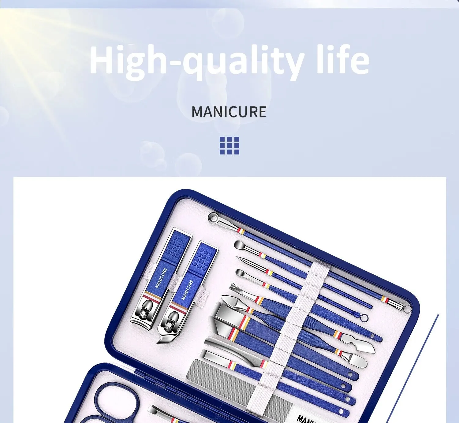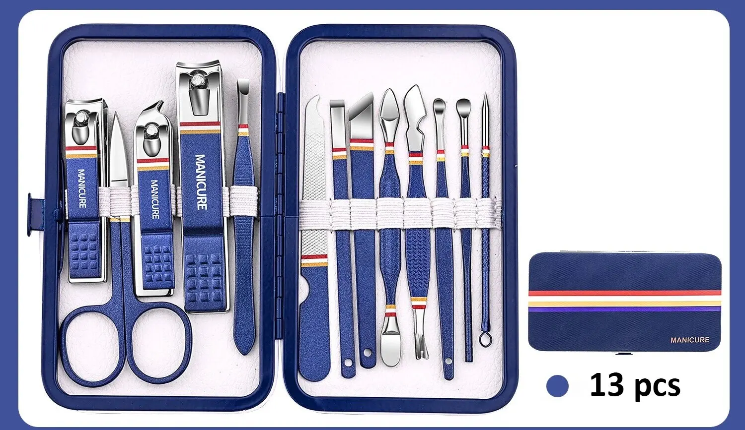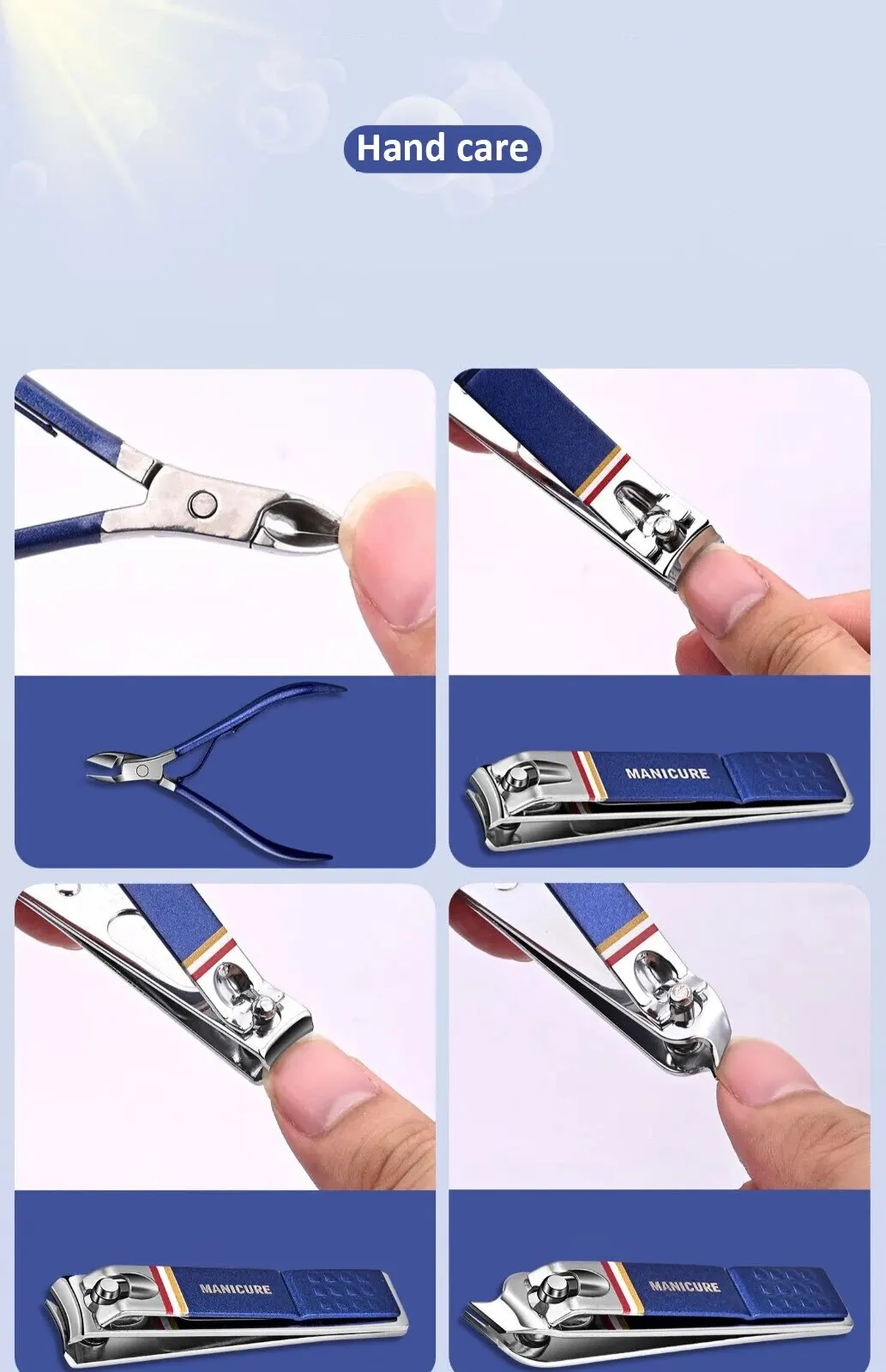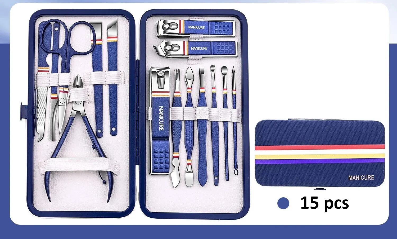 9-19pcs/set Nail Cutter Set Stainless Steel Nail Clippers Set With Folding Bag Manicure Kits Scissors Makeup Beauty Tool