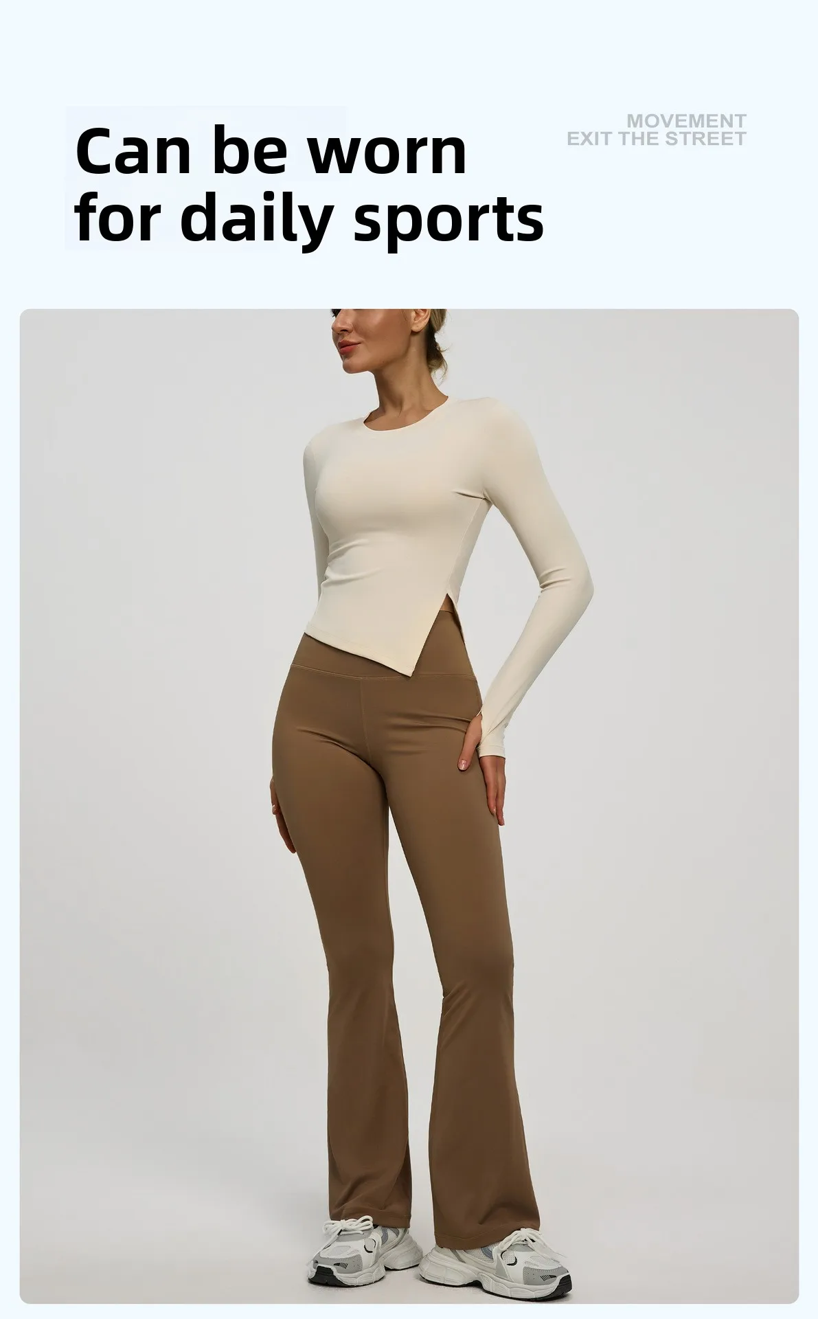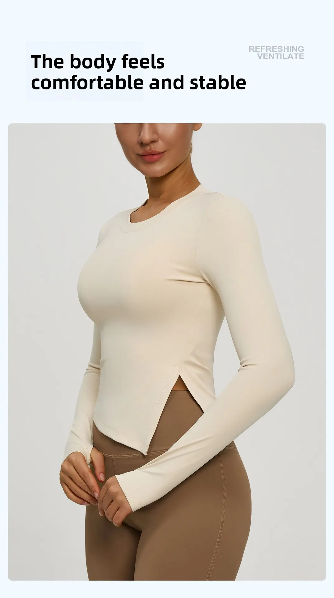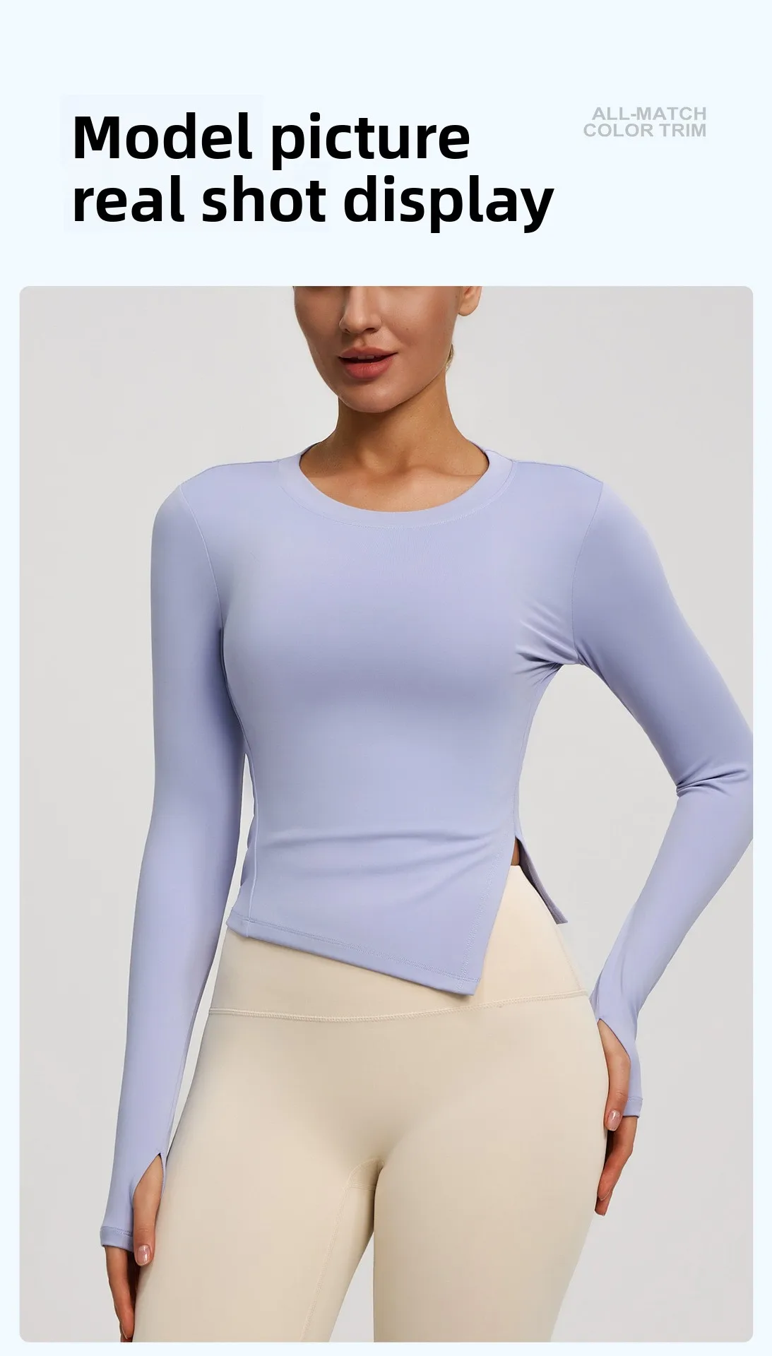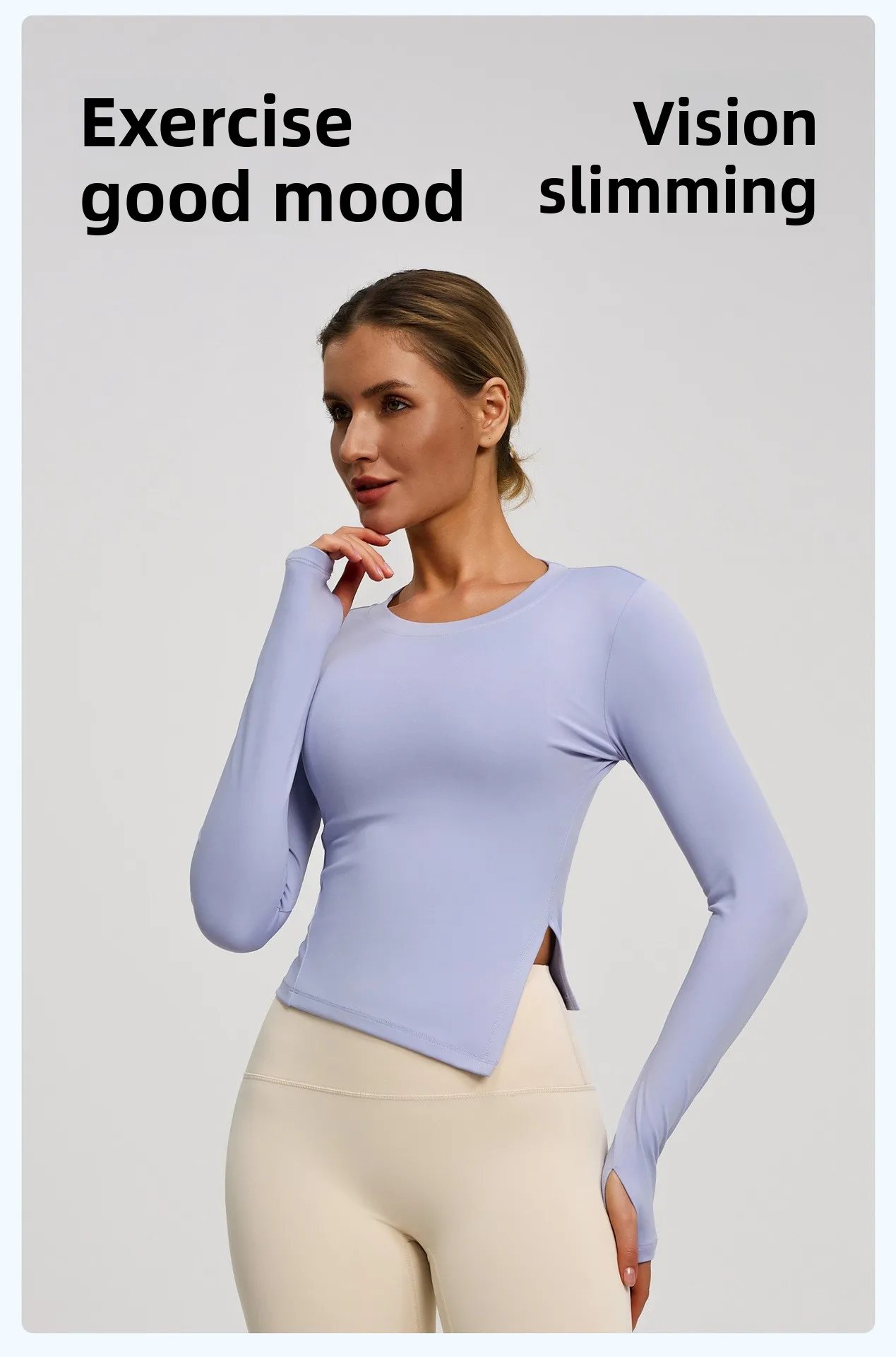 Autumn and Winter New Long Sleeve T-shirt Round Neck Split Solid Color Yoga Clothing Sports Fitness Clothing Breathable Y2k