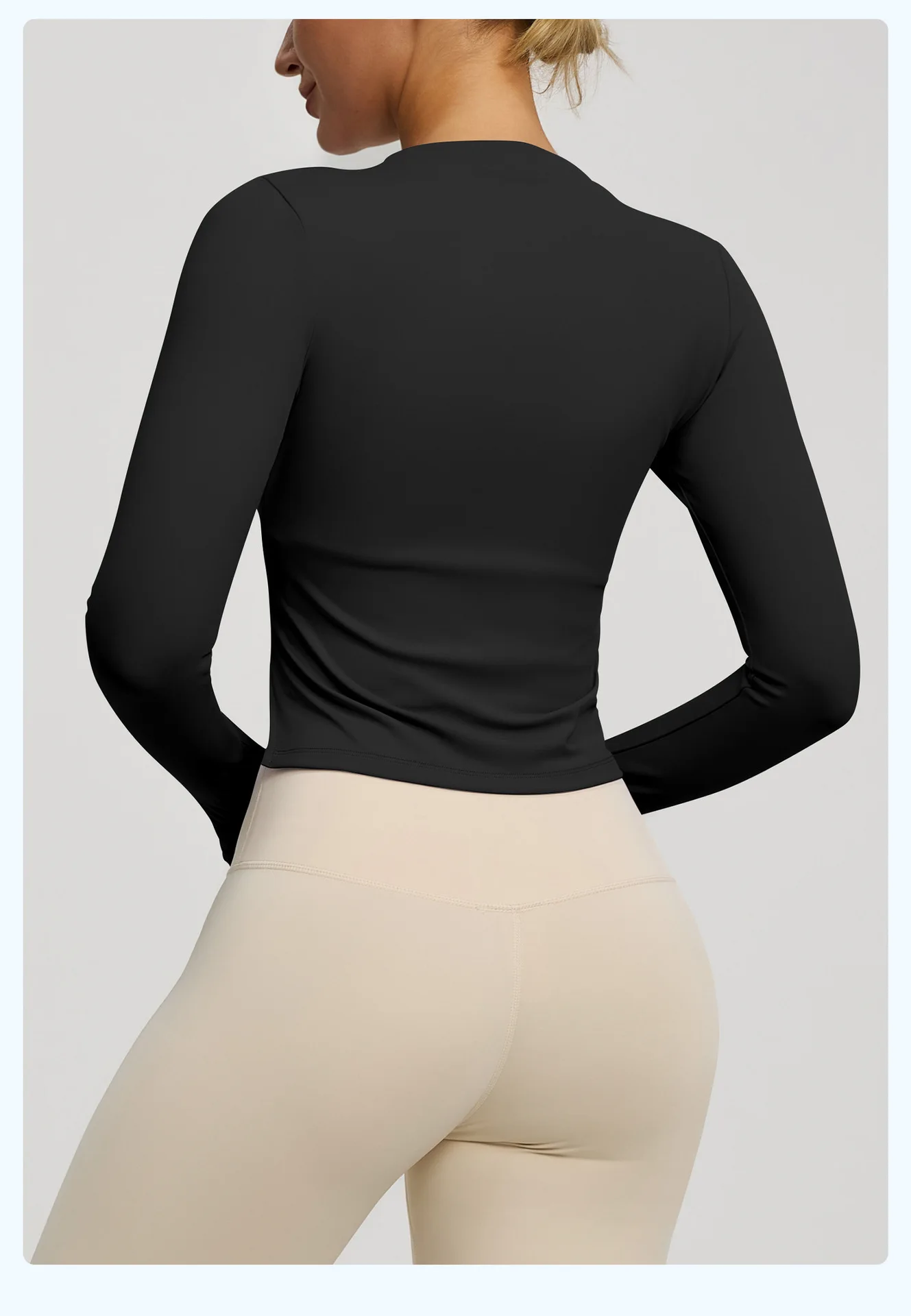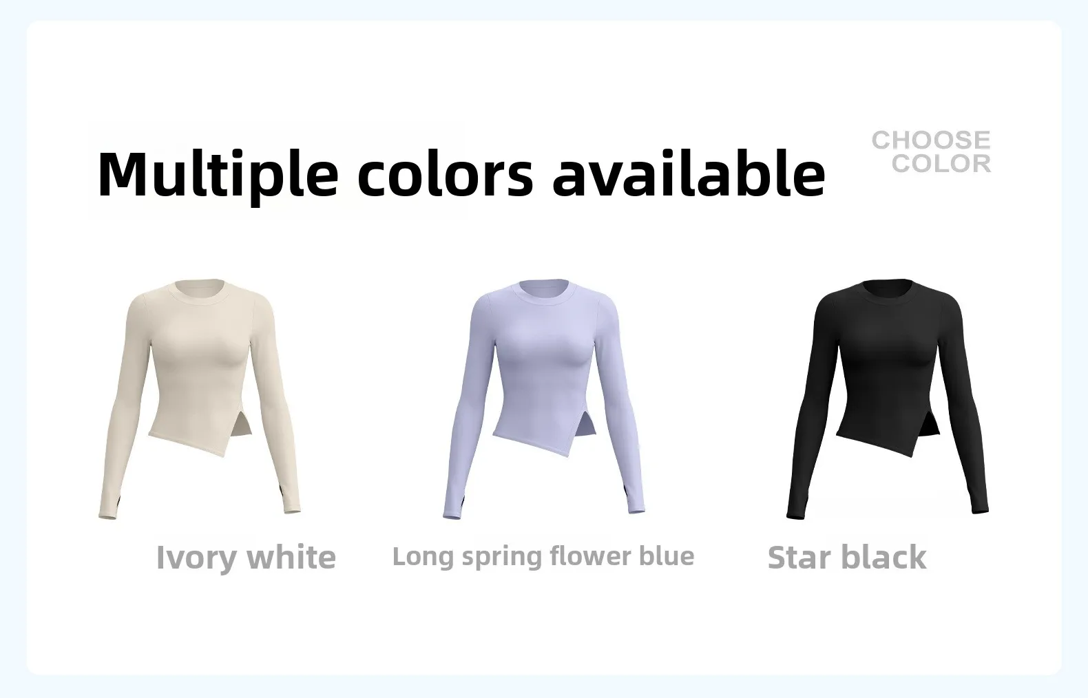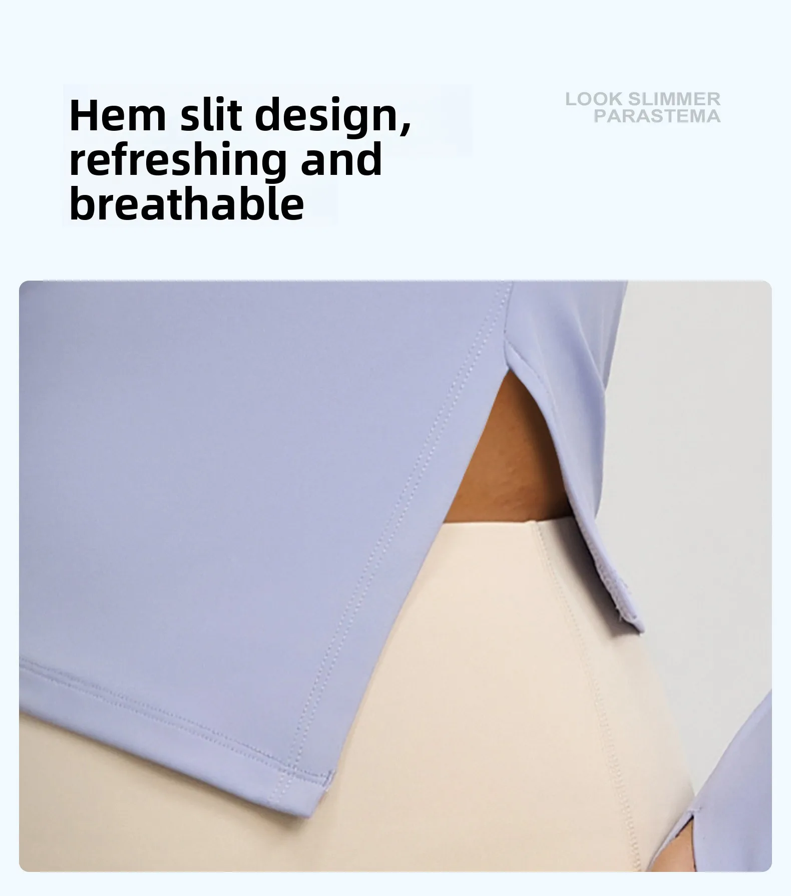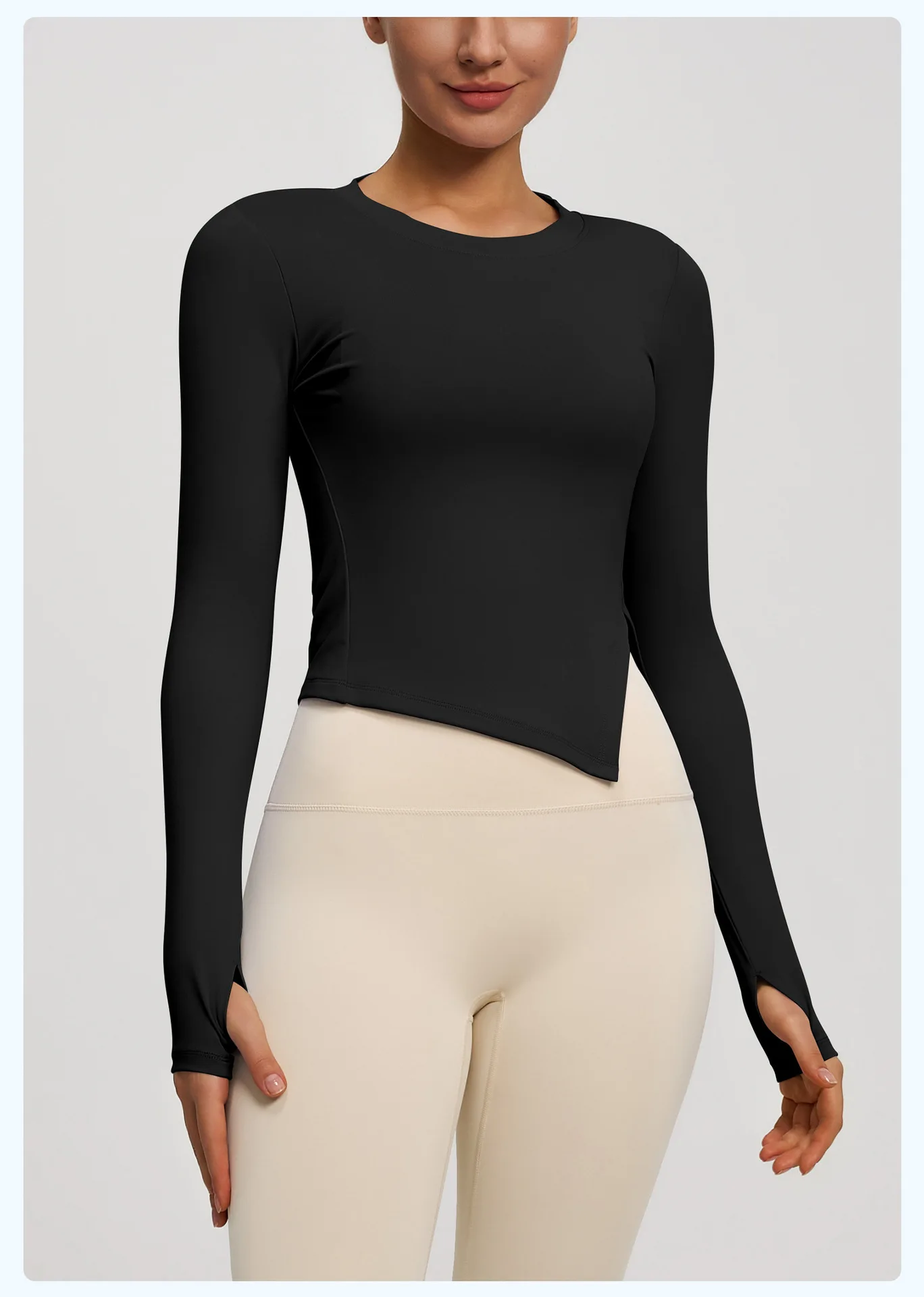 Autumn and Winter New Long Sleeve T-shirt Round Neck Split Solid Color Yoga Clothing Sports Fitness Clothing Breathable Y2k