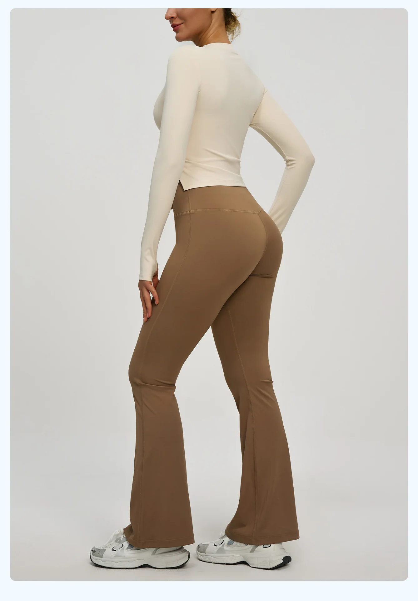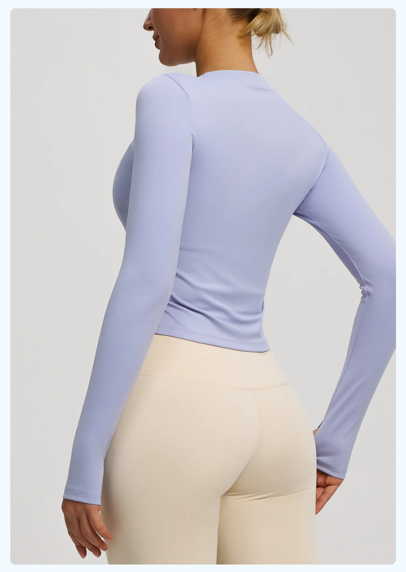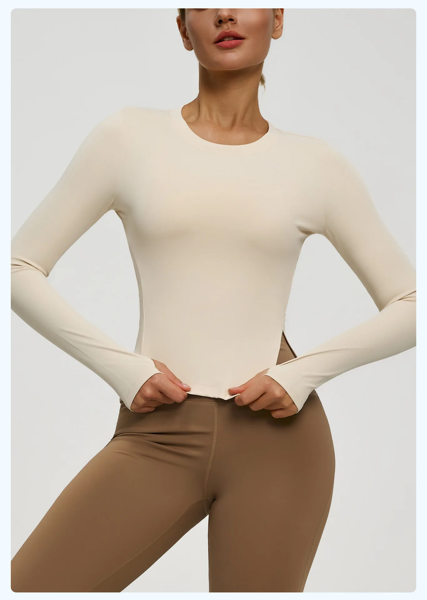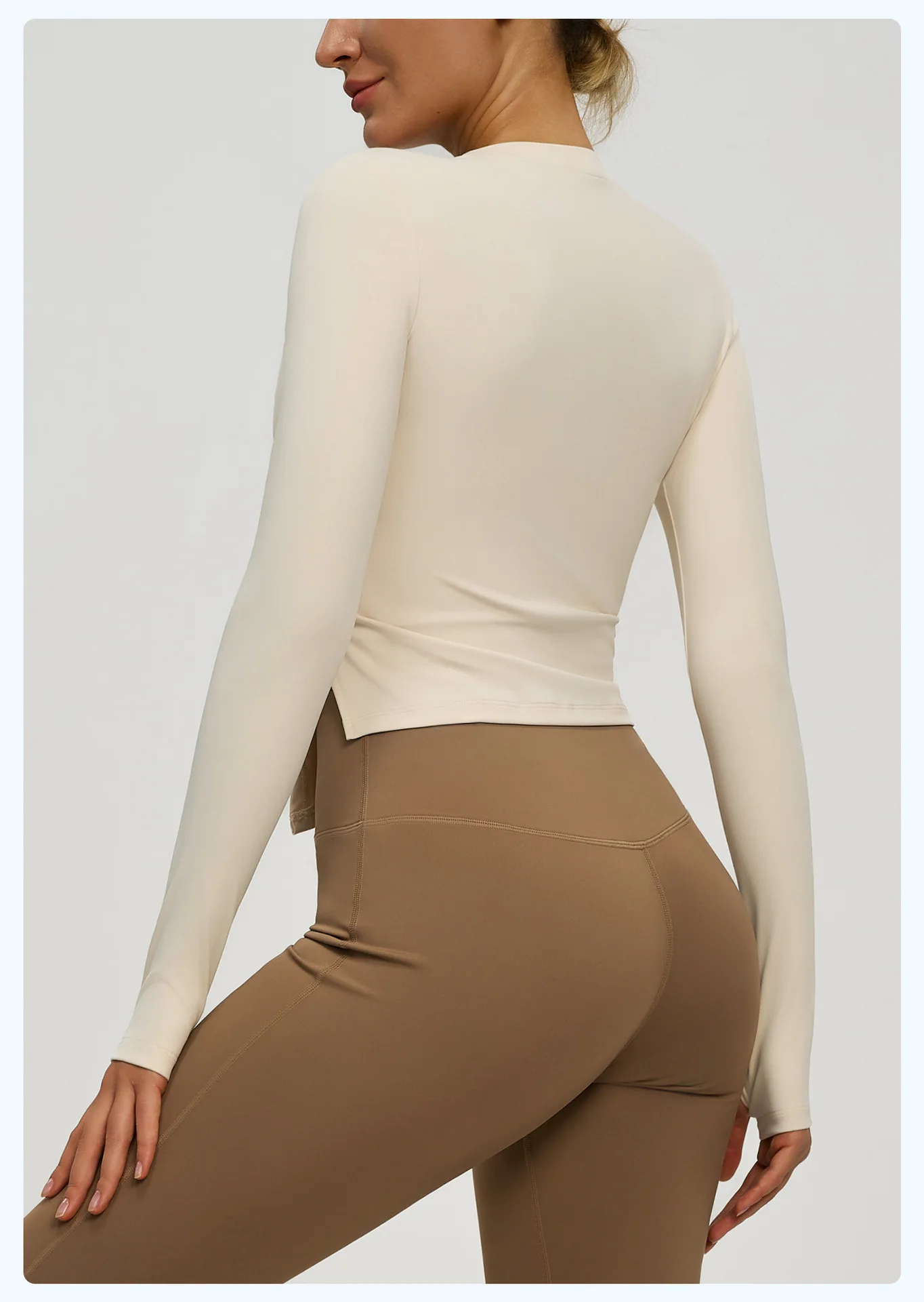 Autumn and Winter New Long Sleeve T-shirt Round Neck Split Solid Color Yoga Clothing Sports Fitness Clothing Breathable Y2k
