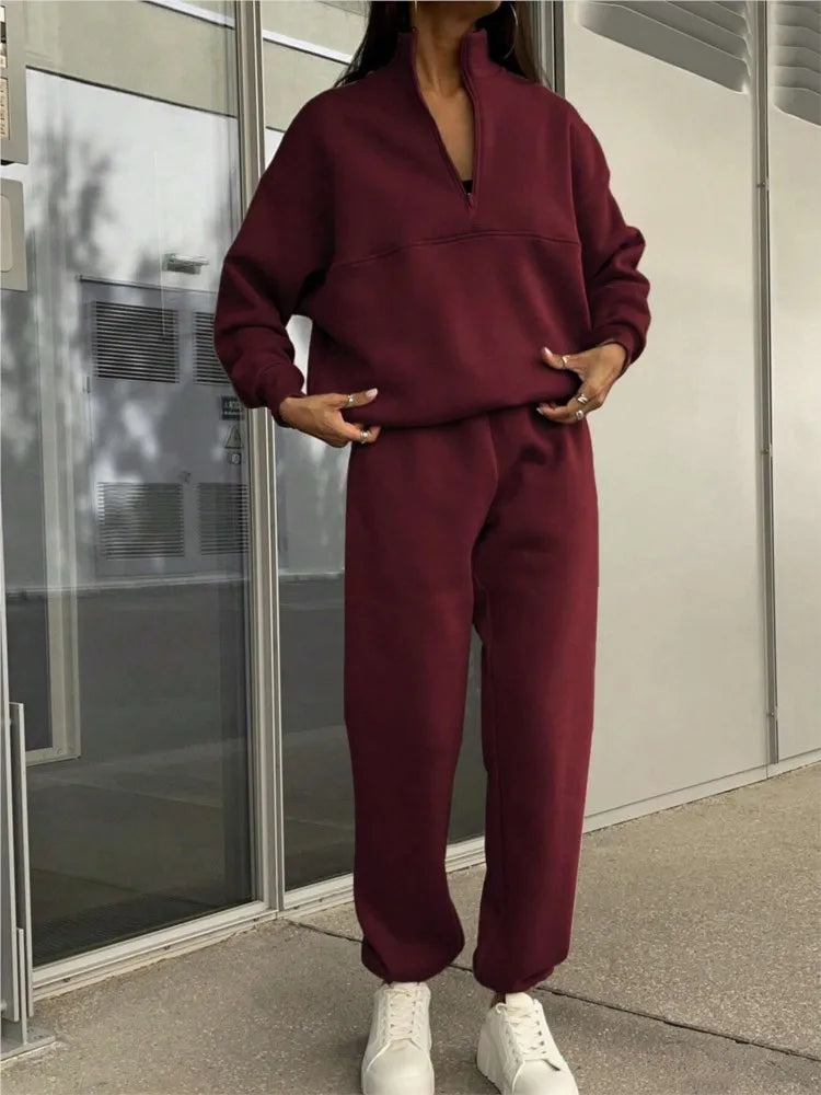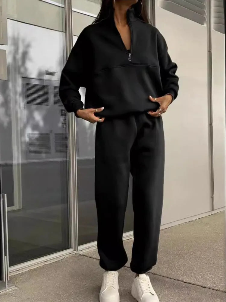 Autumn winter fashion zipper lapel solid color T shirt pants women's S loose casual pocket sports pants 2-piece set Female 2024