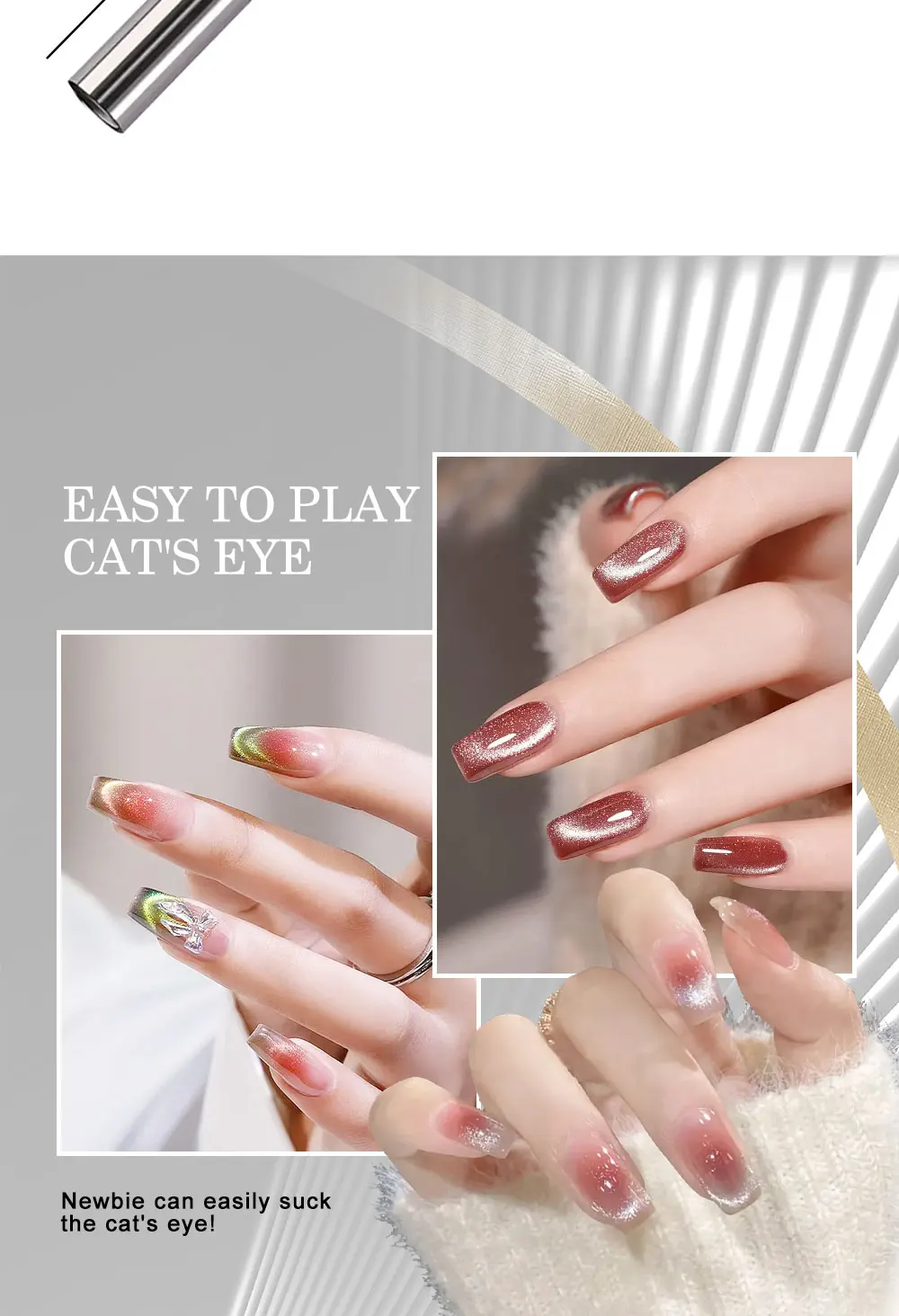 2.Easily and quickly:Using new magnetic materials and manufacturing technology,easy to use,safe and durable.Our nail art kit can easily and quickly create long-lasting beautiful nails in a short time.The super magnetism helps you easily obtain the cat's eye effect within 5-10 seconds,but this tool must be used with cat eye gel nail polish.