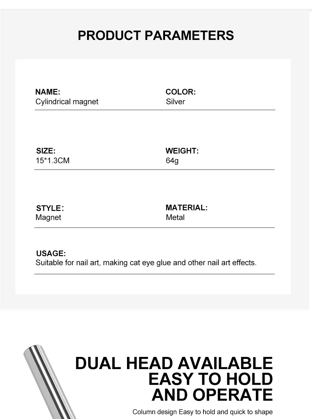 Cat's Eye Gel Nail Polish Magnetic Stick Cylindrical Strong Nail Magnet for Cat Eye UV Gel Polish Magic Nails Art Design Tool
