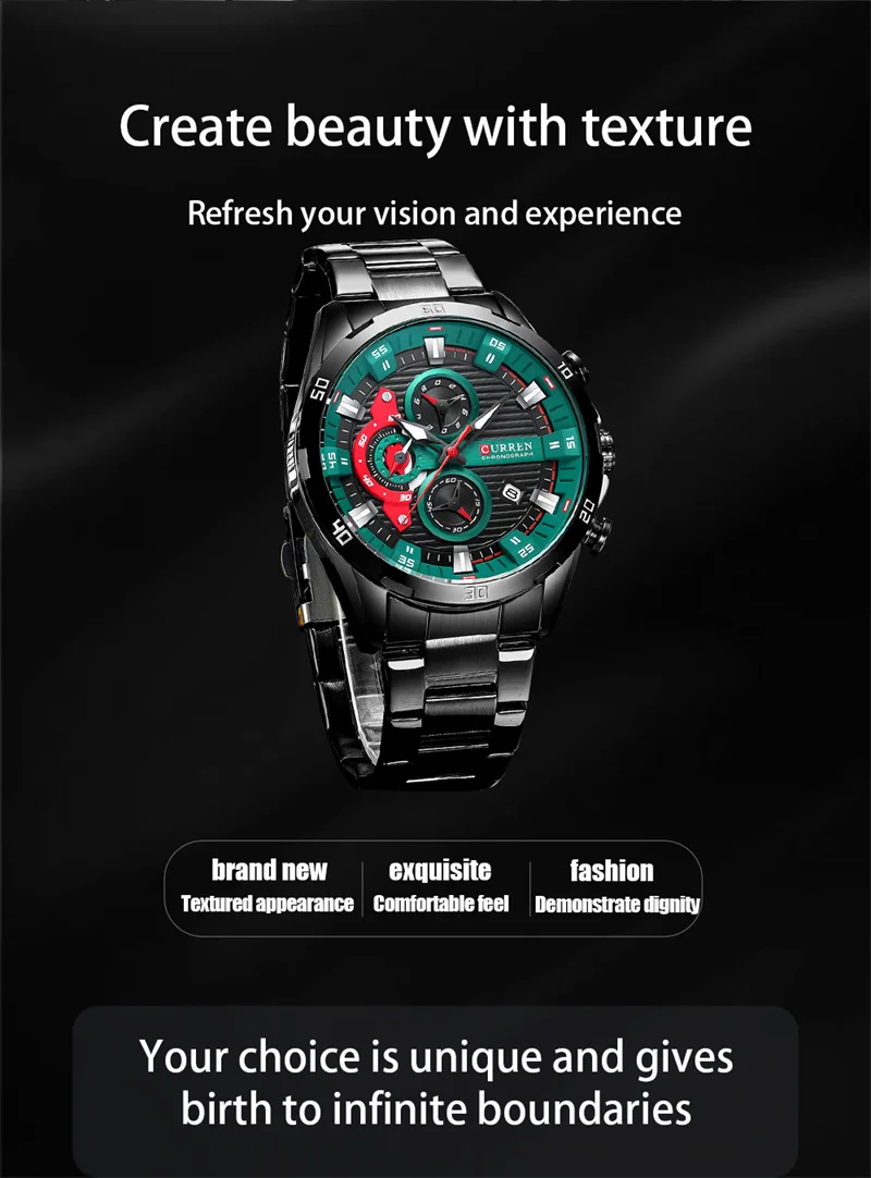 CURREN 8402 New Brand Luxury Men's Business Quartz Watch Stainless Steel Waterproof Night Light Chronograph Men's Clock reloj