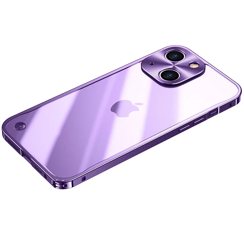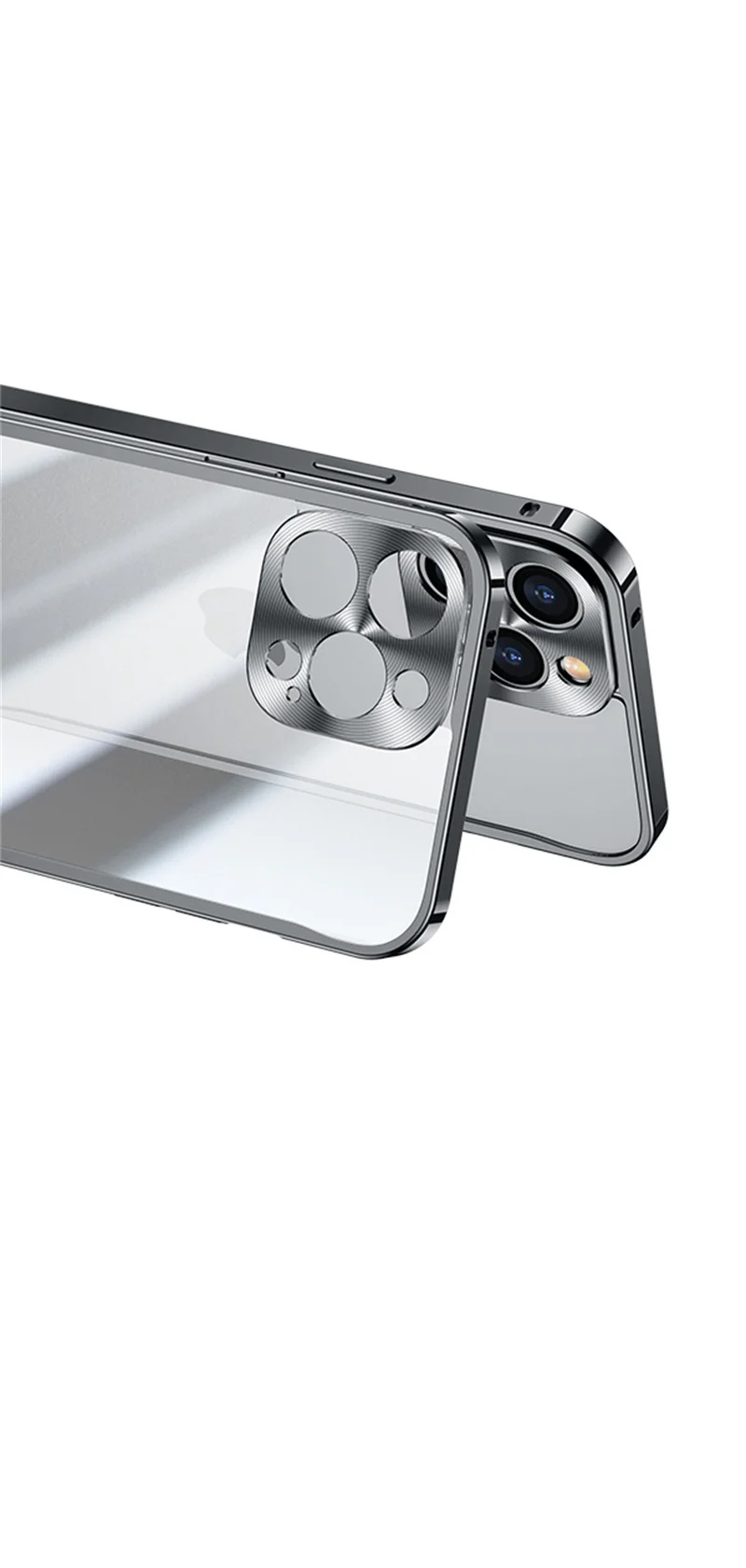 For iPhone 17 16 15 14 13 12 11 Por Max Plus Electroplated Metal Frame Semi Transparent Phone Case Shockproof Protective Cover