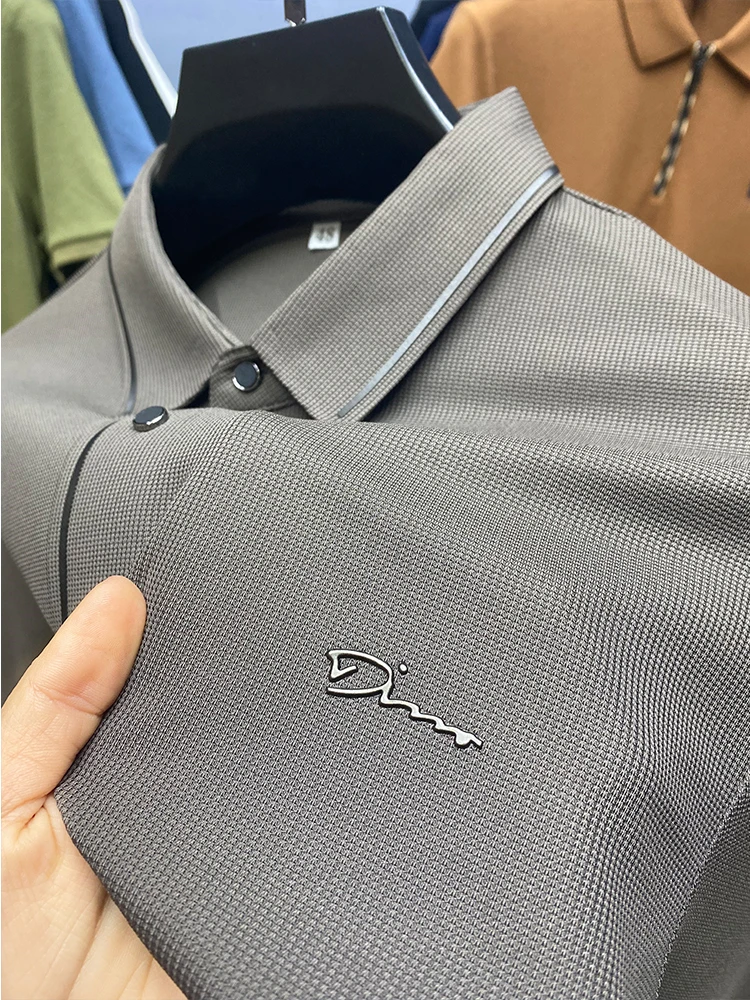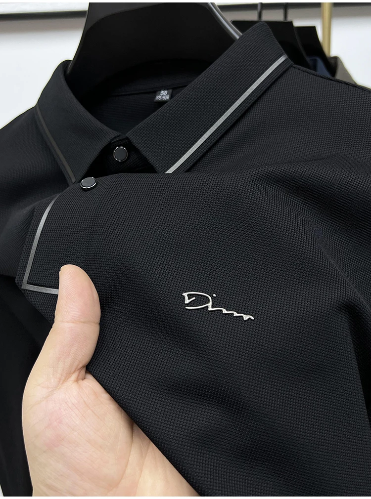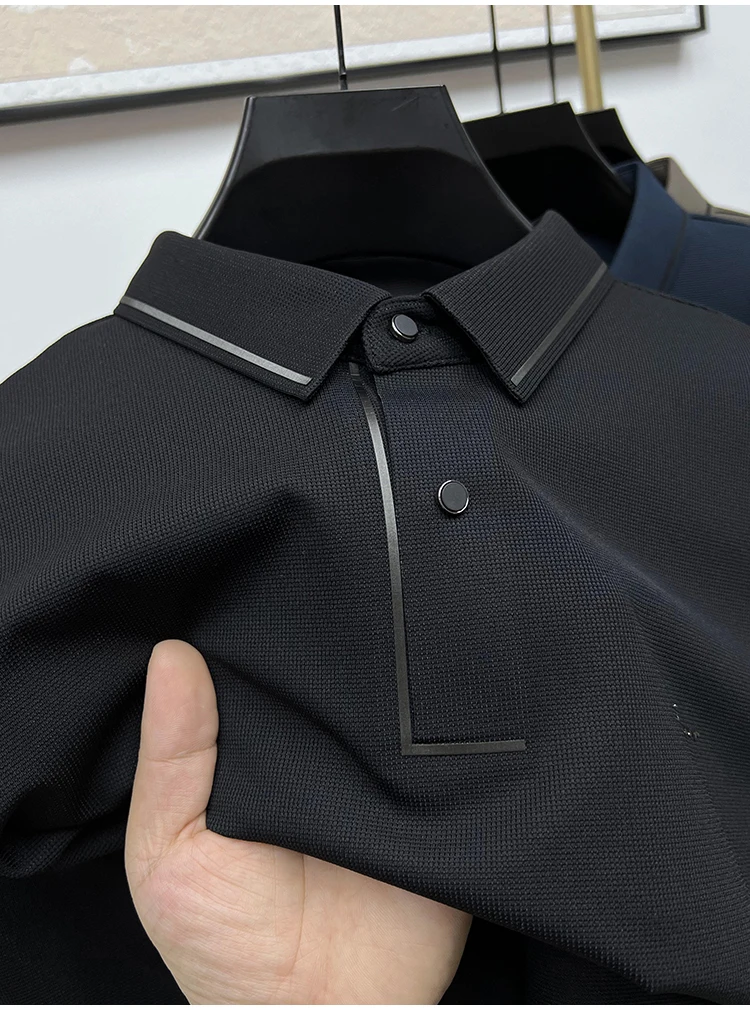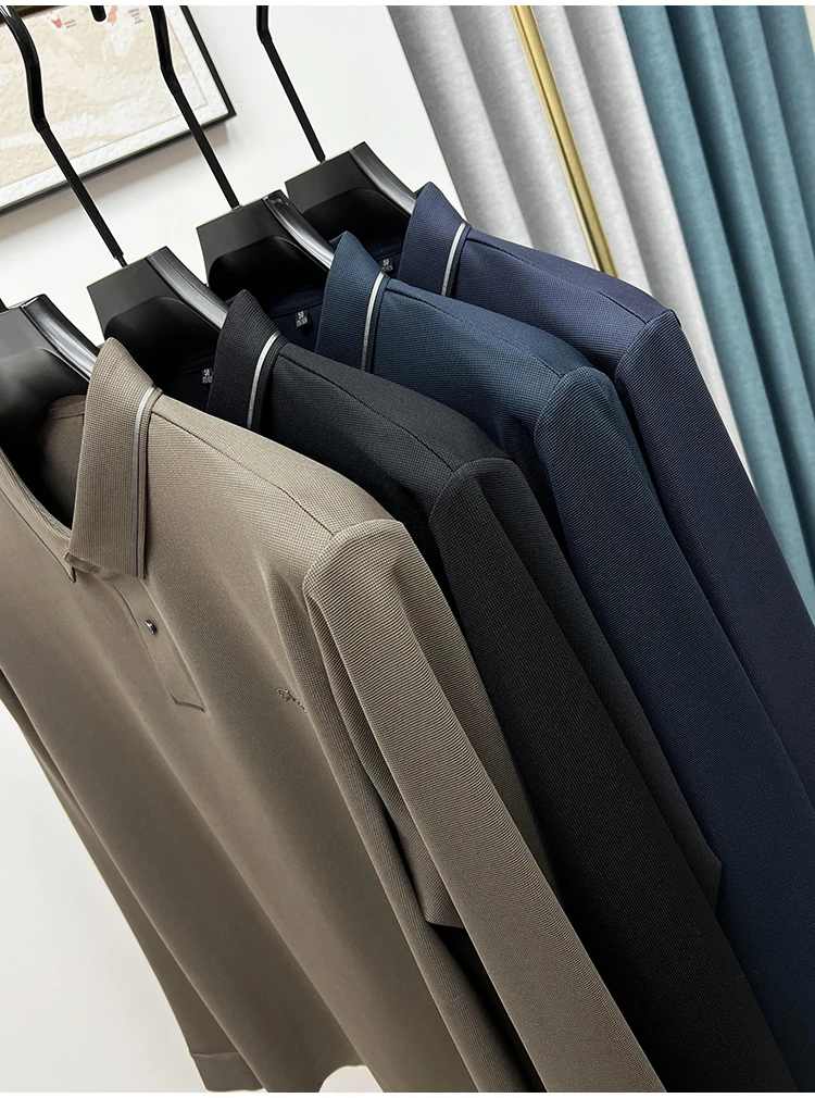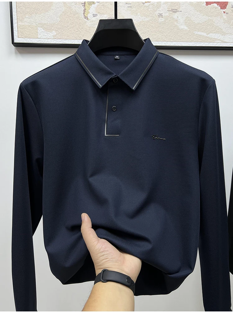 High Quality Ice Silk Polo Shirt Long Sleeve Skin-friendly T-shirt 2023 Autumn Fashion Trend Simple Business Handsome Lapel Ropa