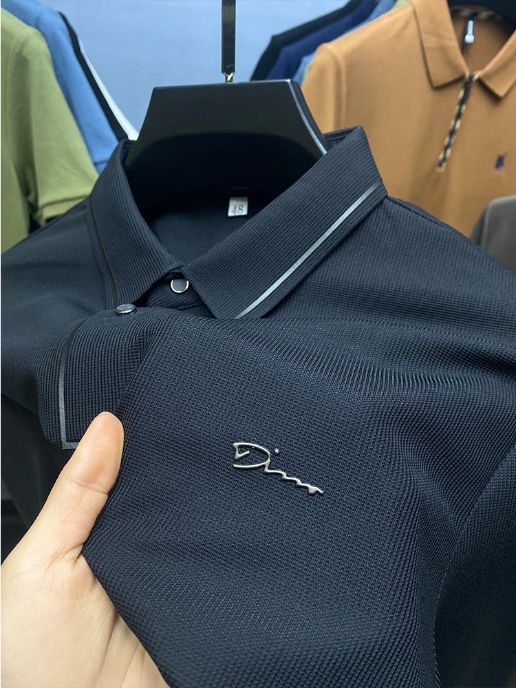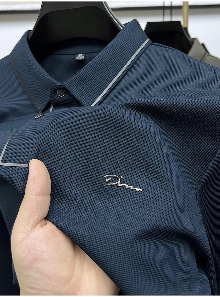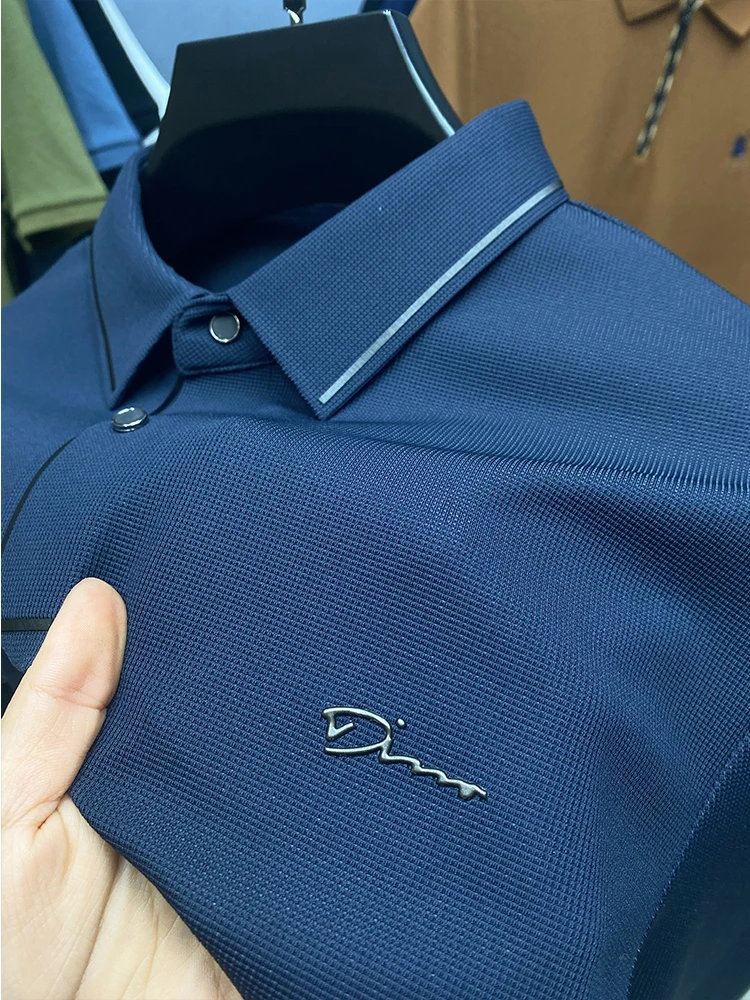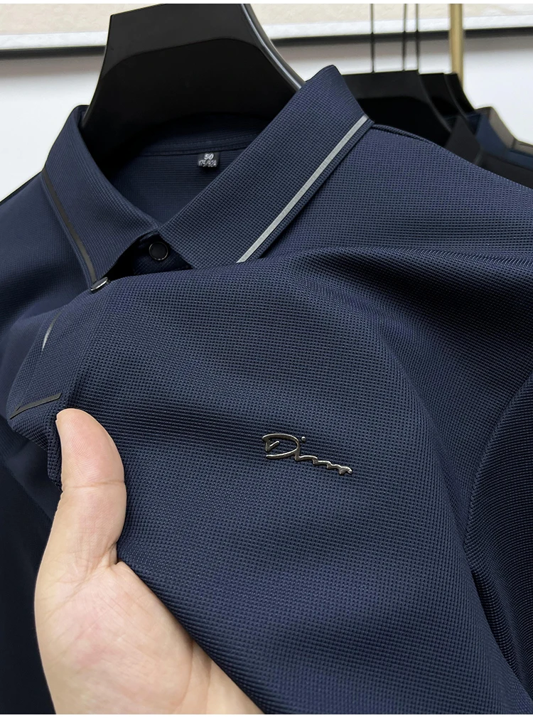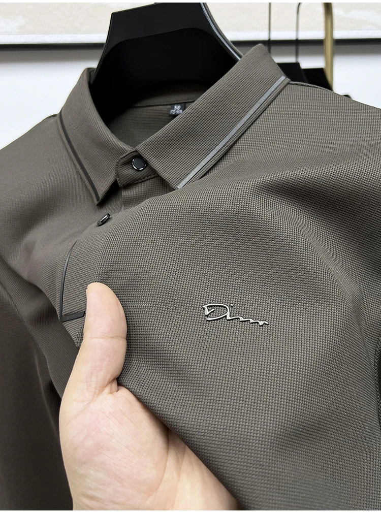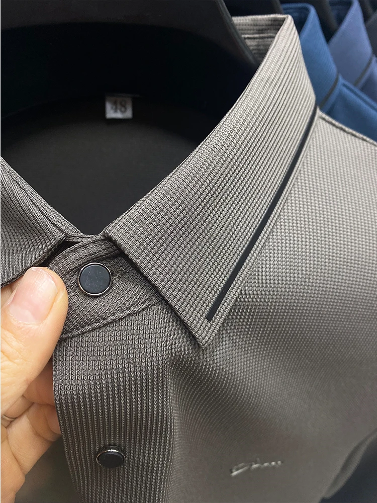 High Quality Ice Silk Polo Shirt Long Sleeve Skin-friendly T-shirt 2023 Autumn Fashion Trend Simple Business Handsome Lapel Ropa