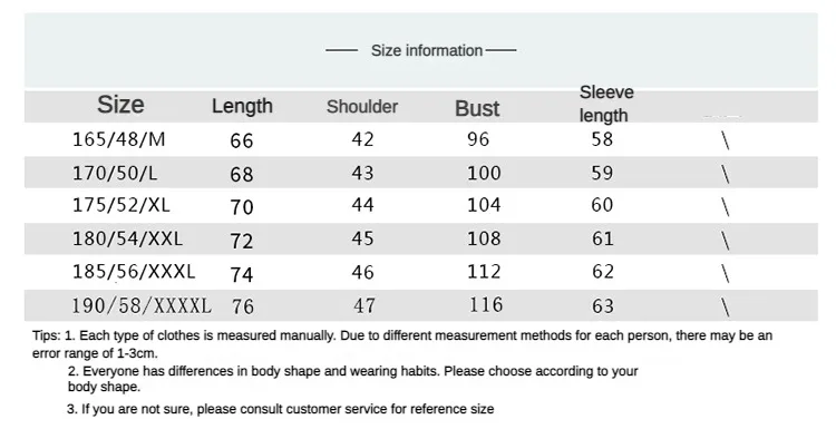 size_info: {"sizeInfoList":[{"length":{"cm":"42","inch":"16.54"},"size":"165/48/M(50-60kg)","vid":-1},{"length":{"cm":"43","inch":"16.93"},"size":"170/50/L(60-65kg)","vid":-2},{"length":{"cm":"44","inch":"17.32"},"size":"175/52/XL(65-75kg)","vid":-3},{"length":{"cm":"45","inch":"17.72"},"size":"180/54/2XL(75-85kg)","vid":-4},{"length":{"cm":"46","inch":"18.11"},"size":"185/56/3XL(85-90kg)","vid":-5},{"length":{"cm":"47","inch":"18.50"},"size":"190/58/4XL(90-105kg)","vid":-6}]}