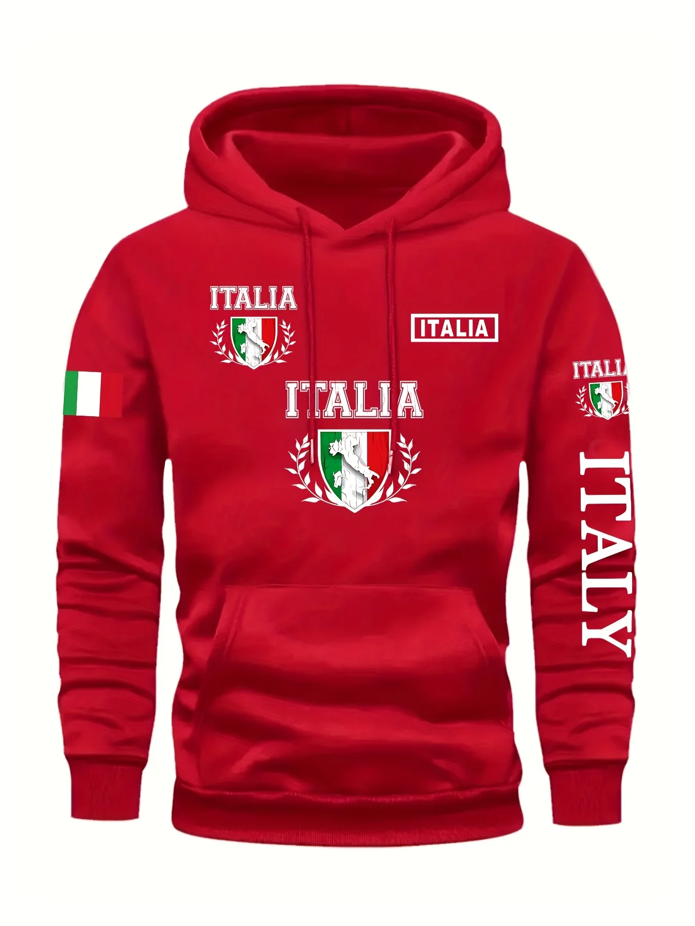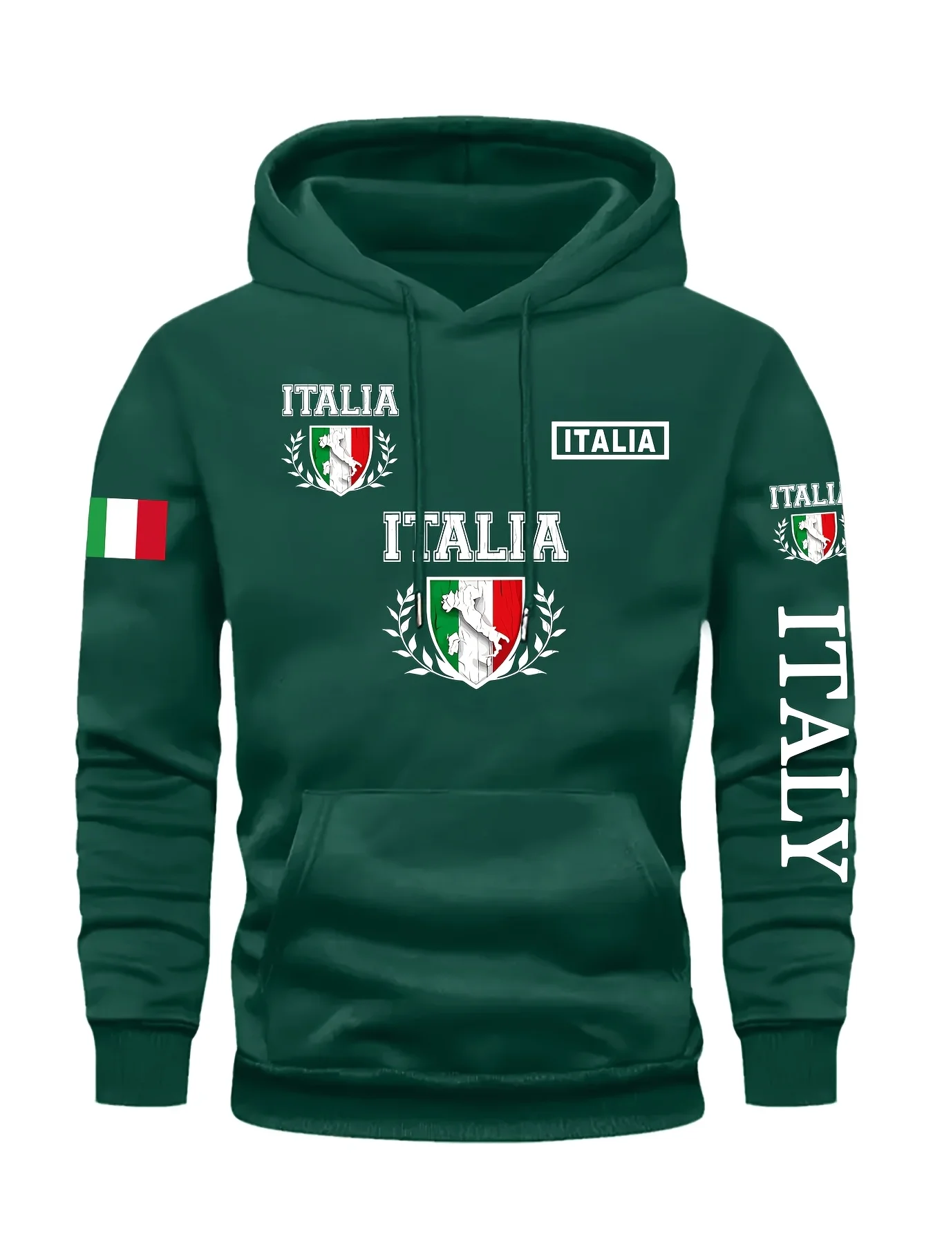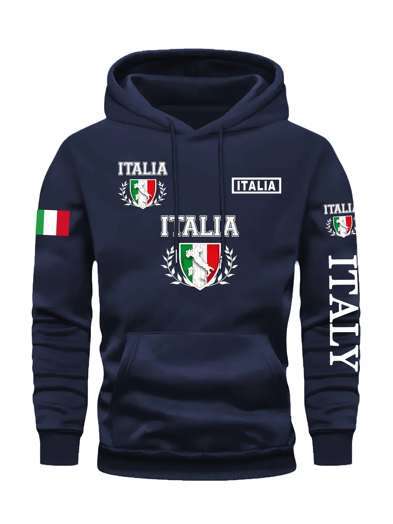 Men's Italy Print Pullover Front Pocket Machine Washable Autumn Winter Comfort Fit Italy Sweatshirt Comfortable Knit Fabric