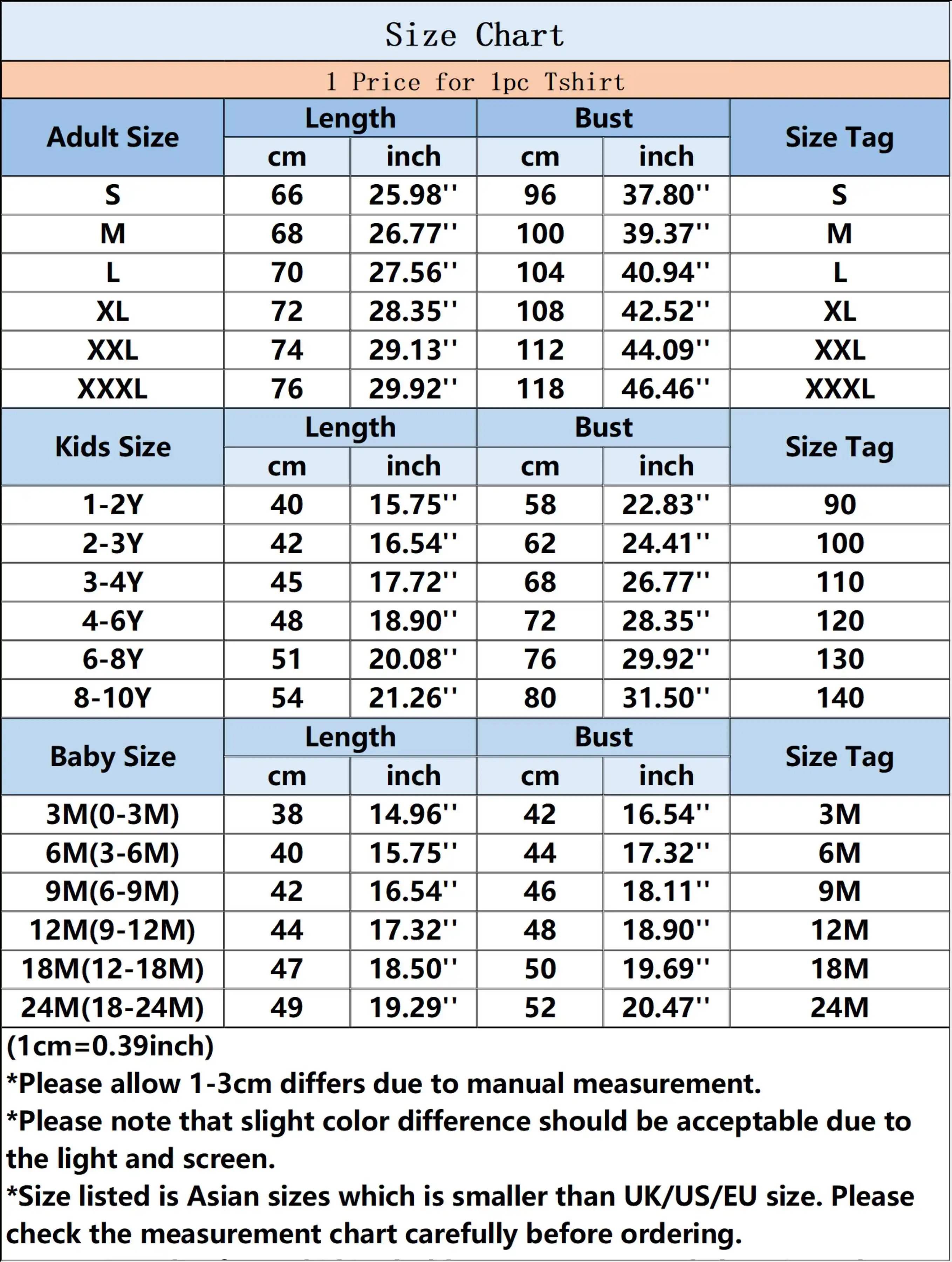 Package : 1PC ADULT SHIRT OR 1PC BABY ROMPER OR 1PC KIDS SHIRT /bag are different styles.