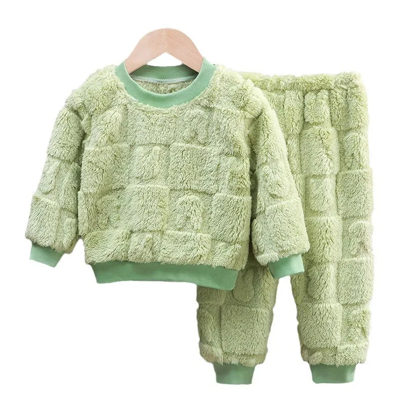 New Autumn and Winter Flange Pajamas Suits Children's Long Sleeve Top+Trousers Sets Plus Velvet Thick Home Wear 1-6 Years Old
