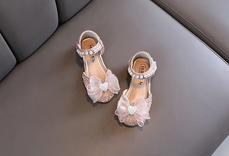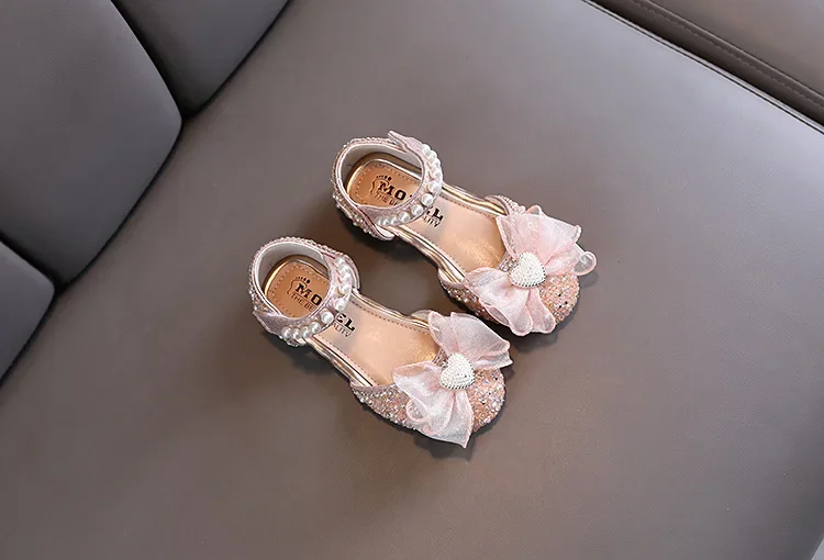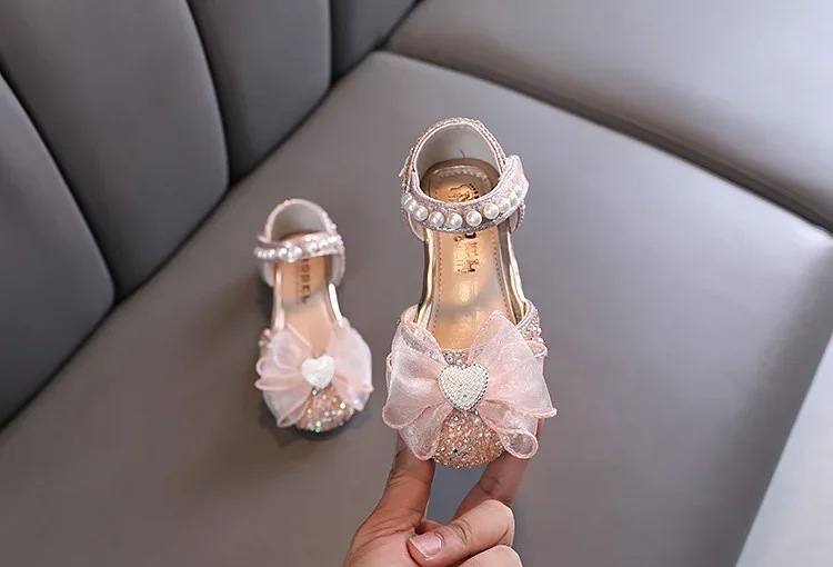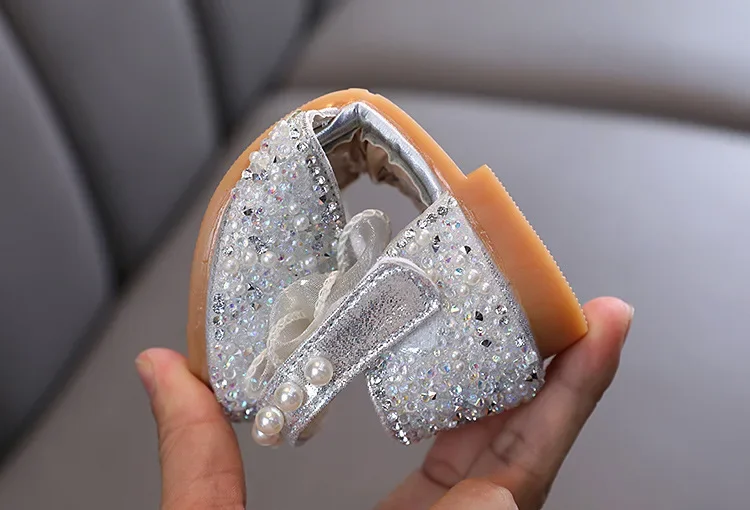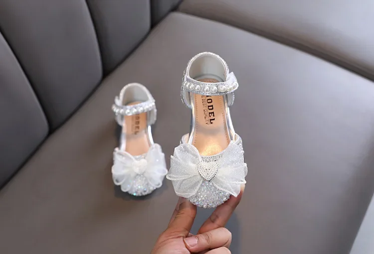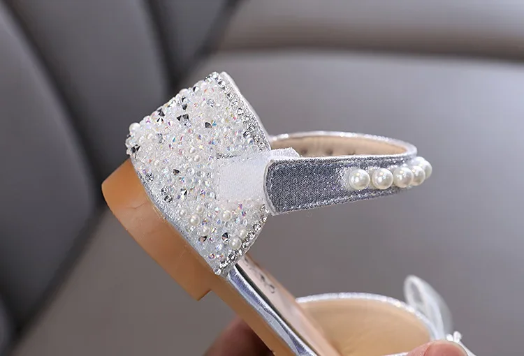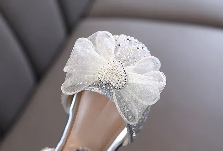 New Children Sandals Rhinestone Bow Wedding Princess Girls Sandal Party Dance Baby Student Flats Kids Performance Shoes H251