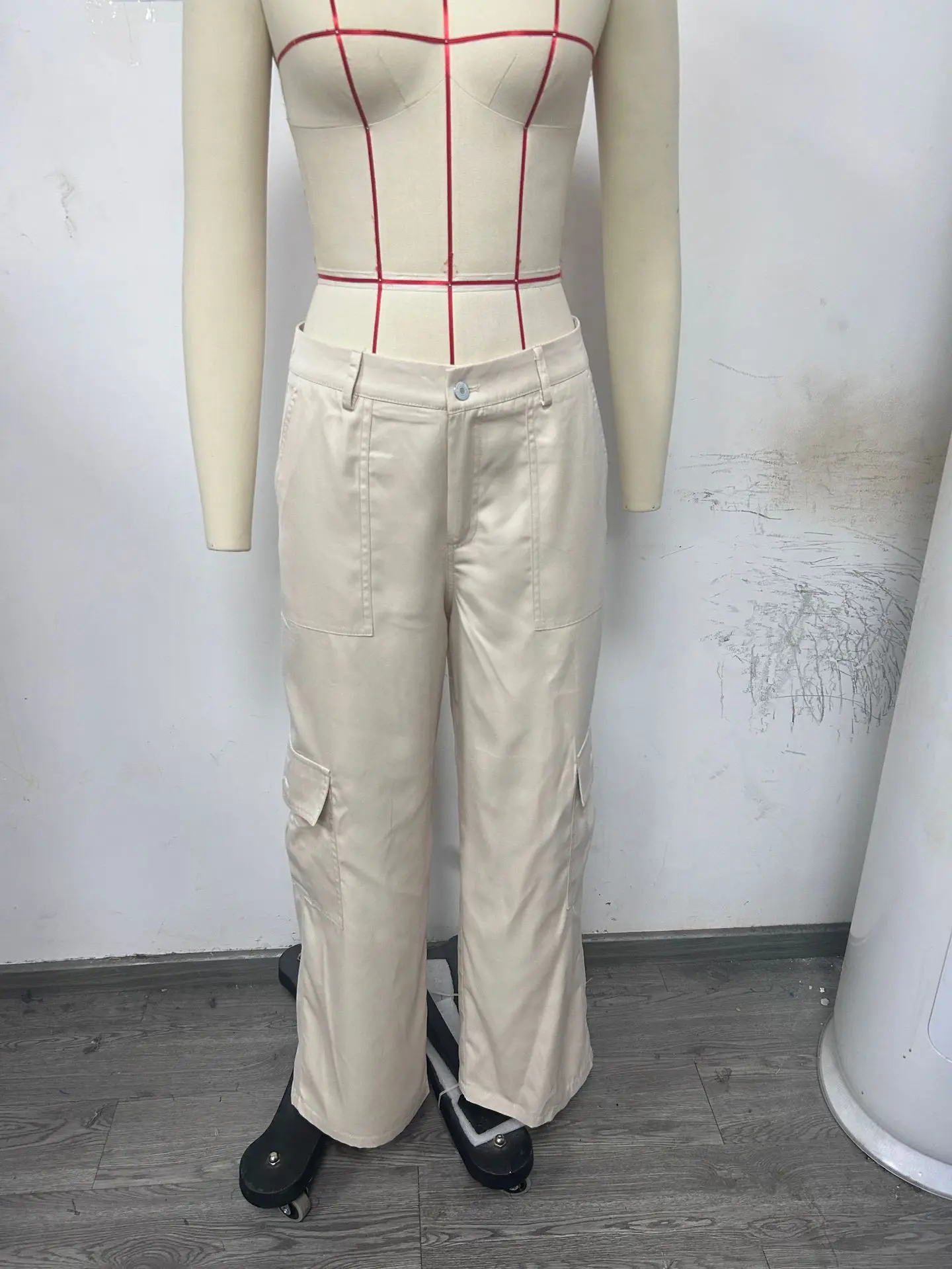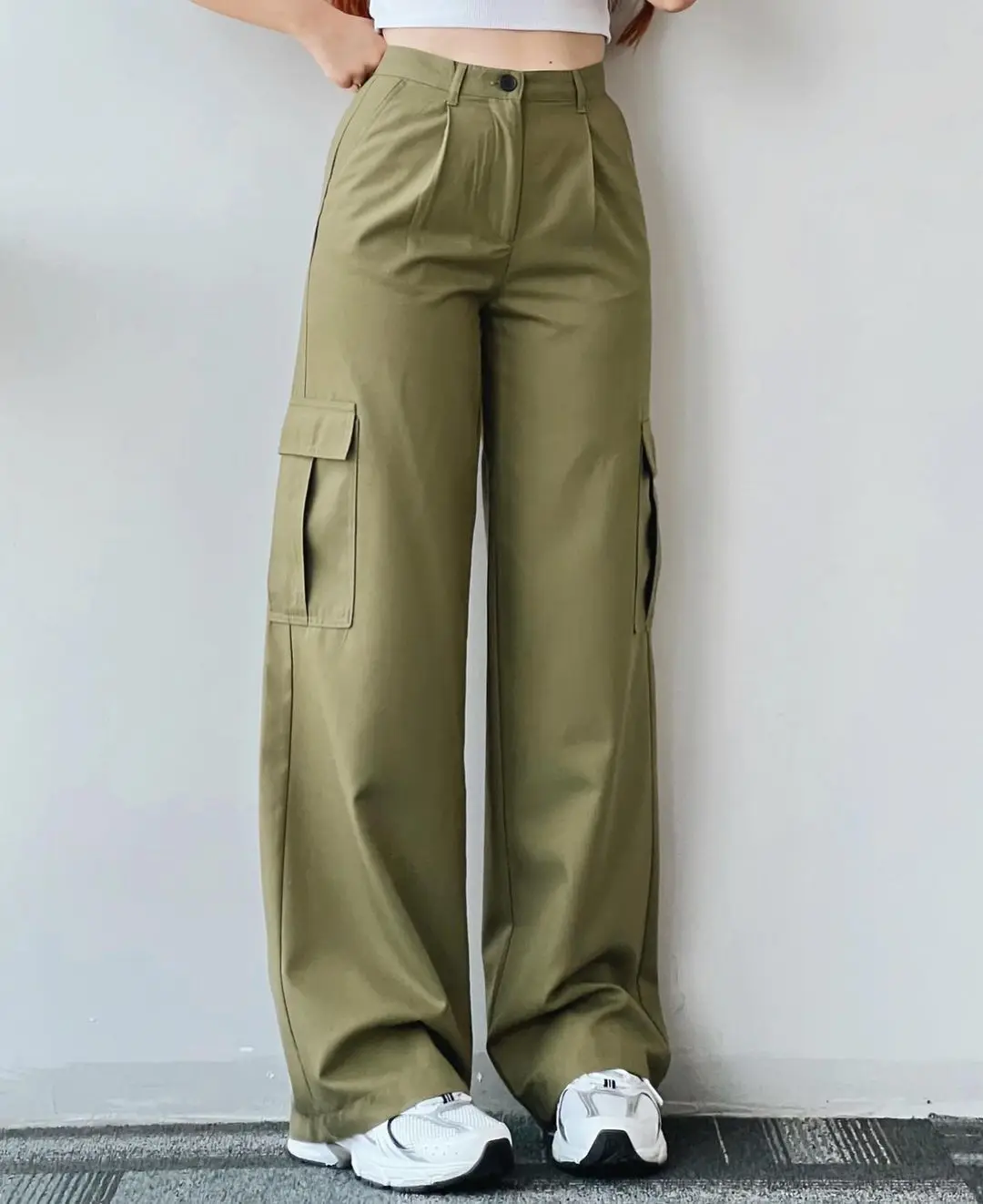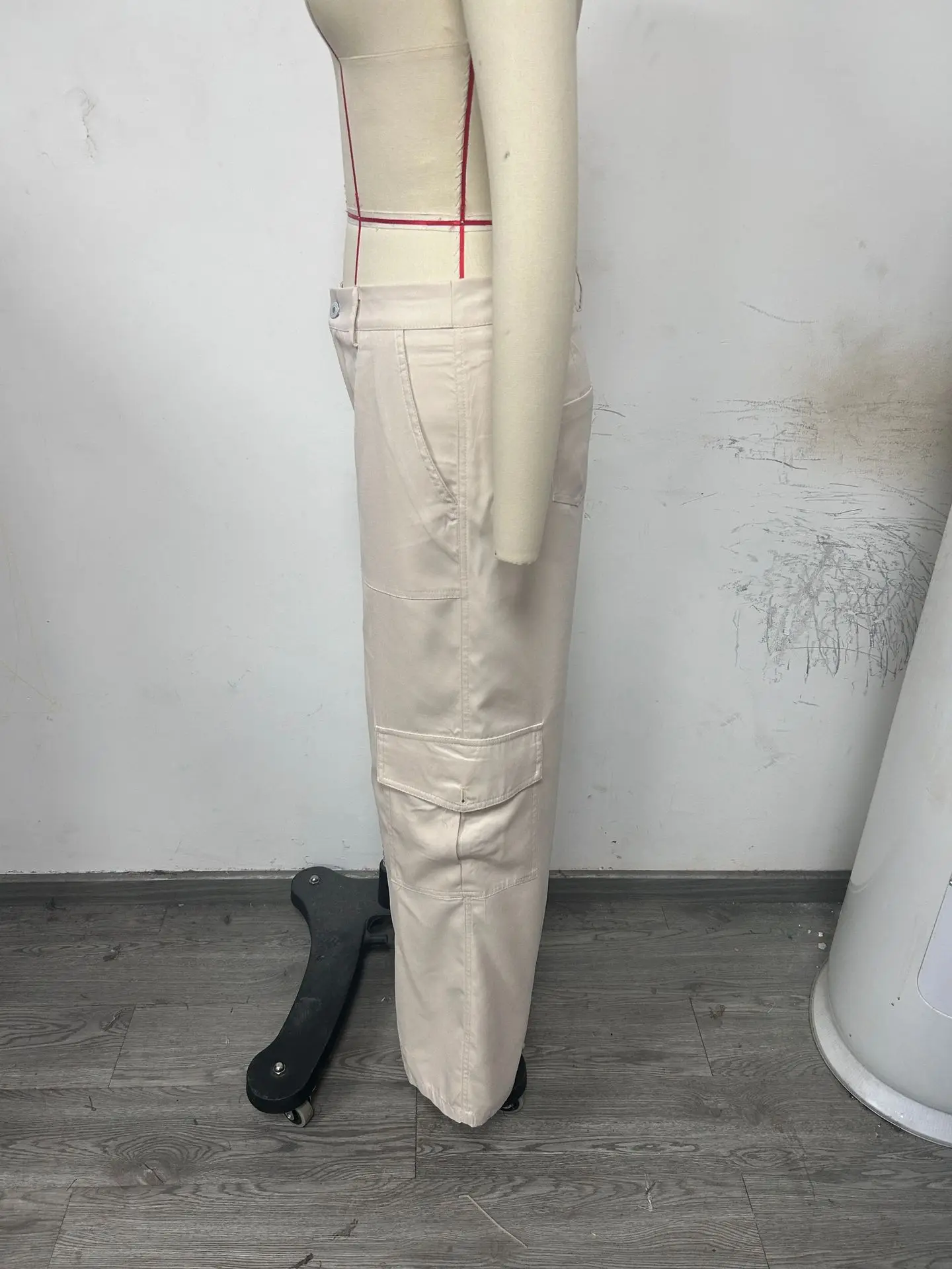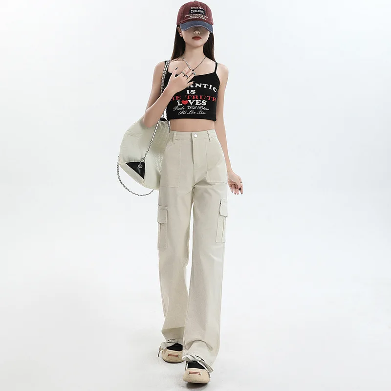 New Straight Cargo High Waist Baggy Trousers Casual Wide Leg Slim Vintage Streetwear Pocket Fashion Women Casual Pants