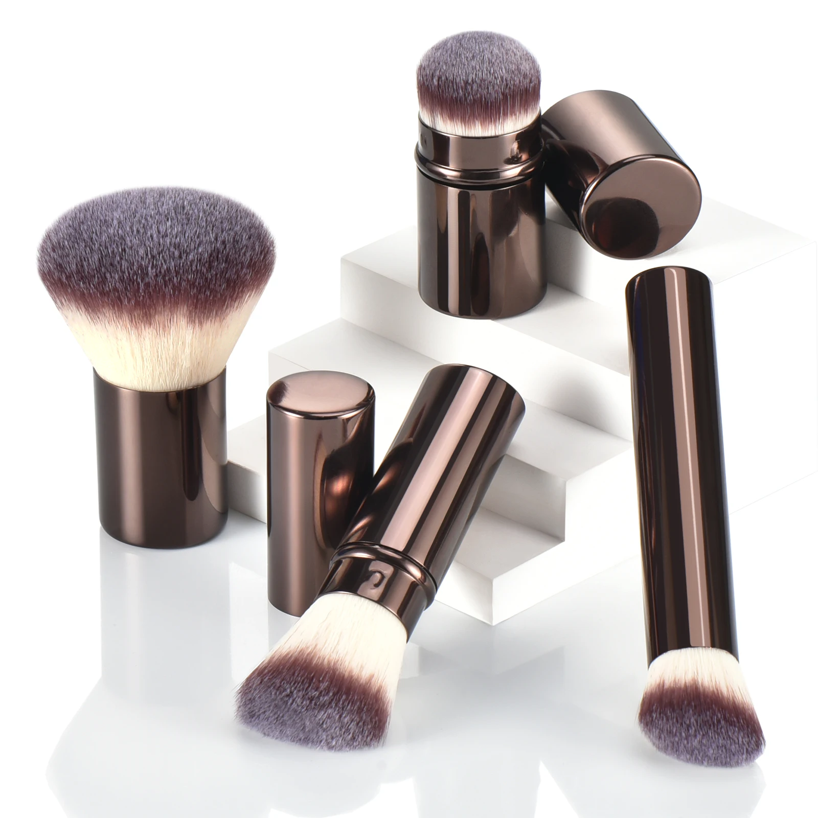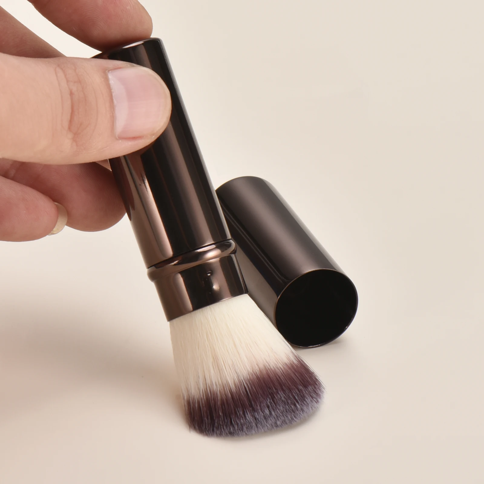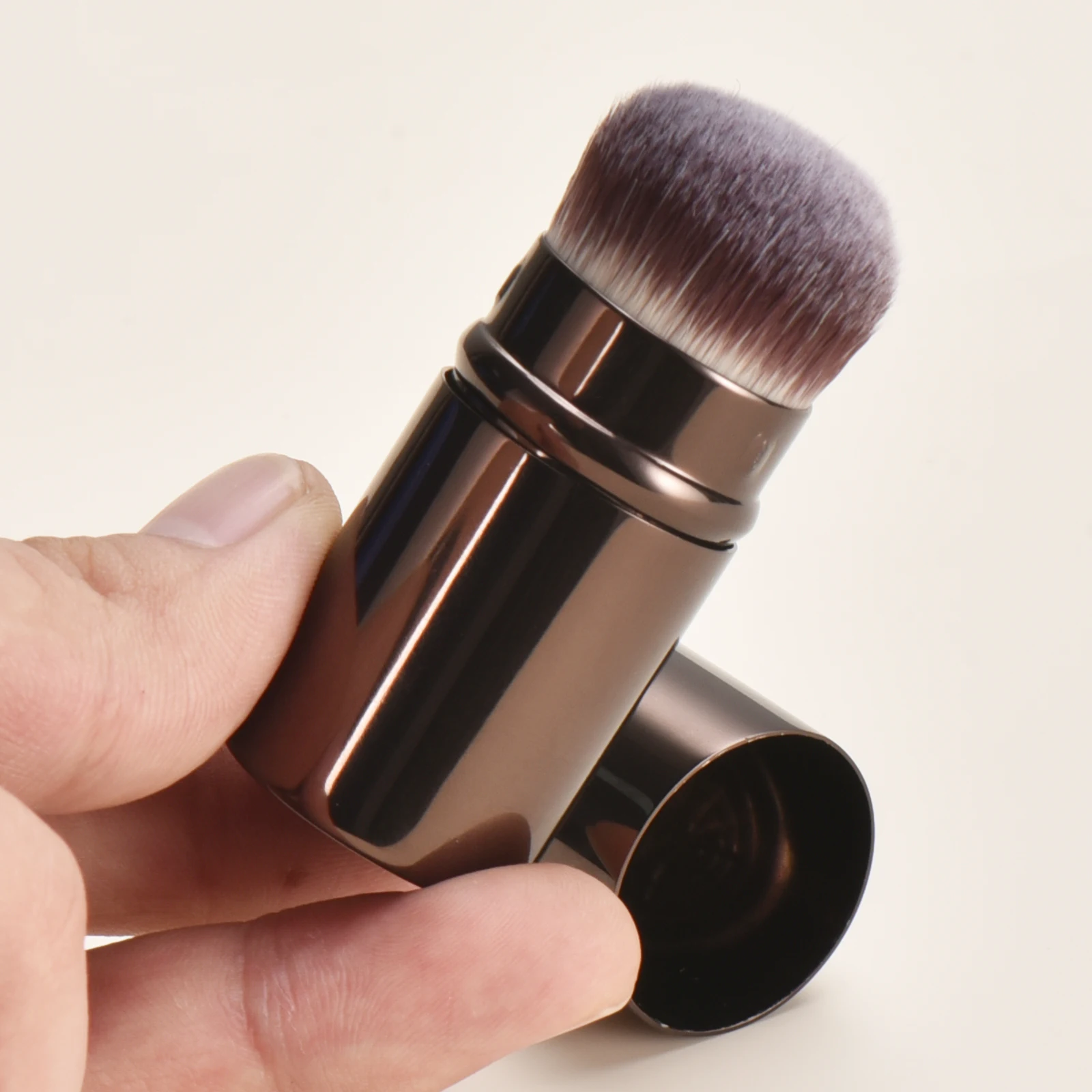 Single Metal Makeup Brush Portable Travel Loose Powder Blush Foundation Contouring Smudge Brush for On-the-Go Beauty Essentials