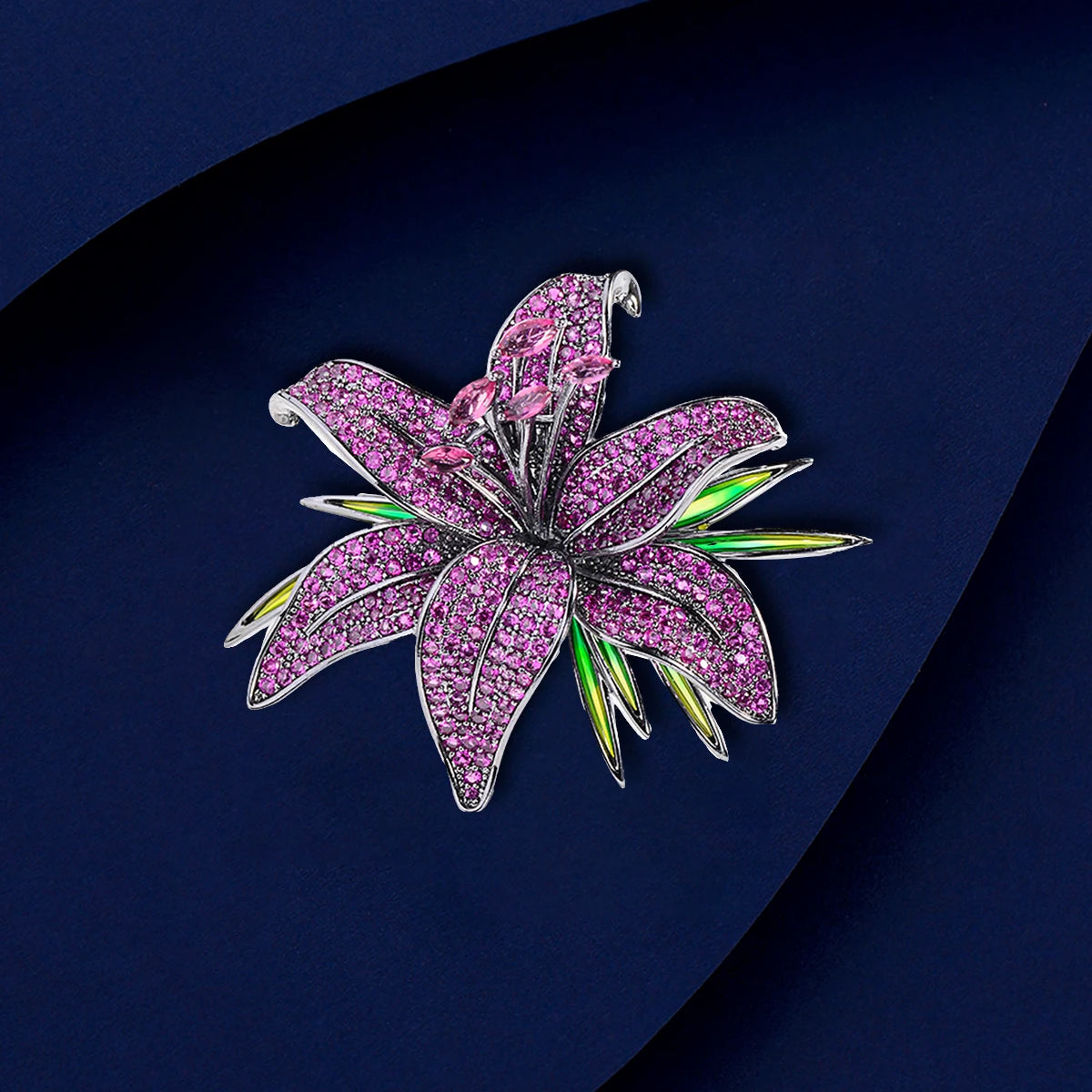 SUYU Autumn New Women's Luxury Zircon Black Flower brooch Stylish and Elegant Design Lily brooch