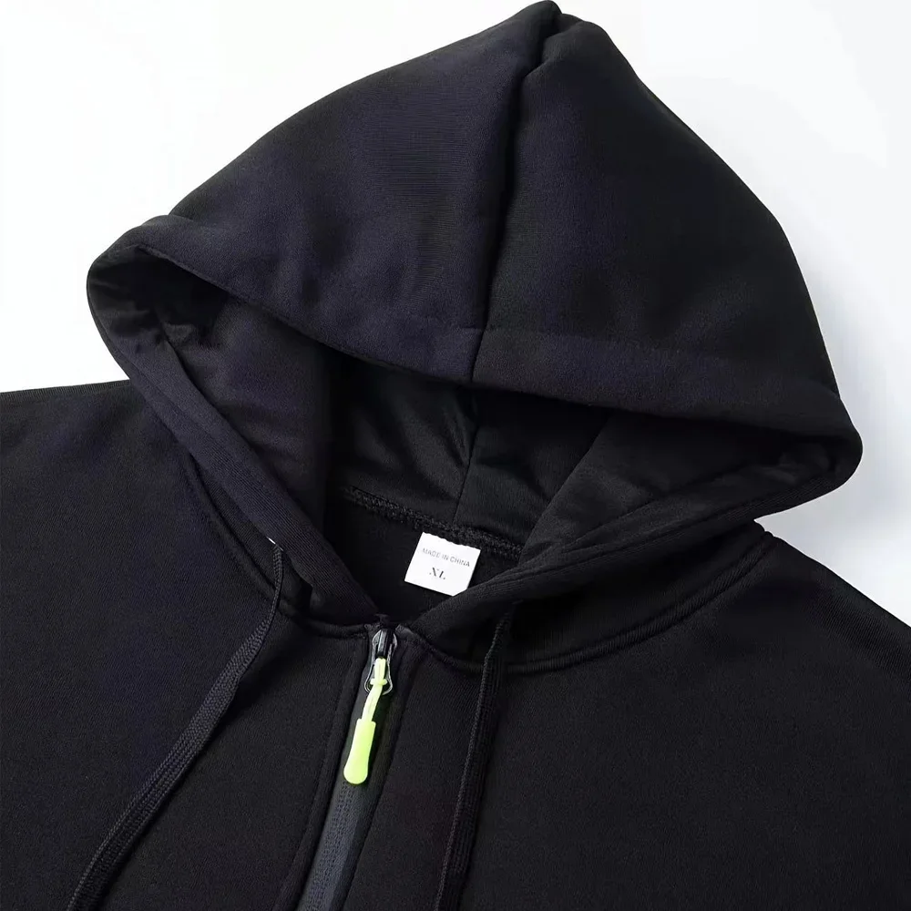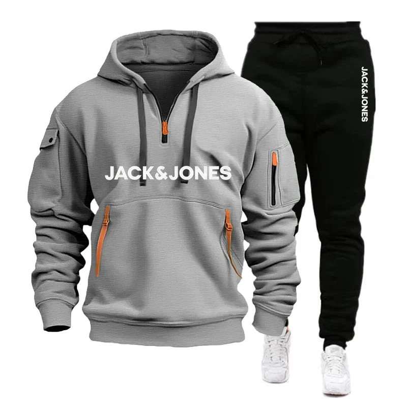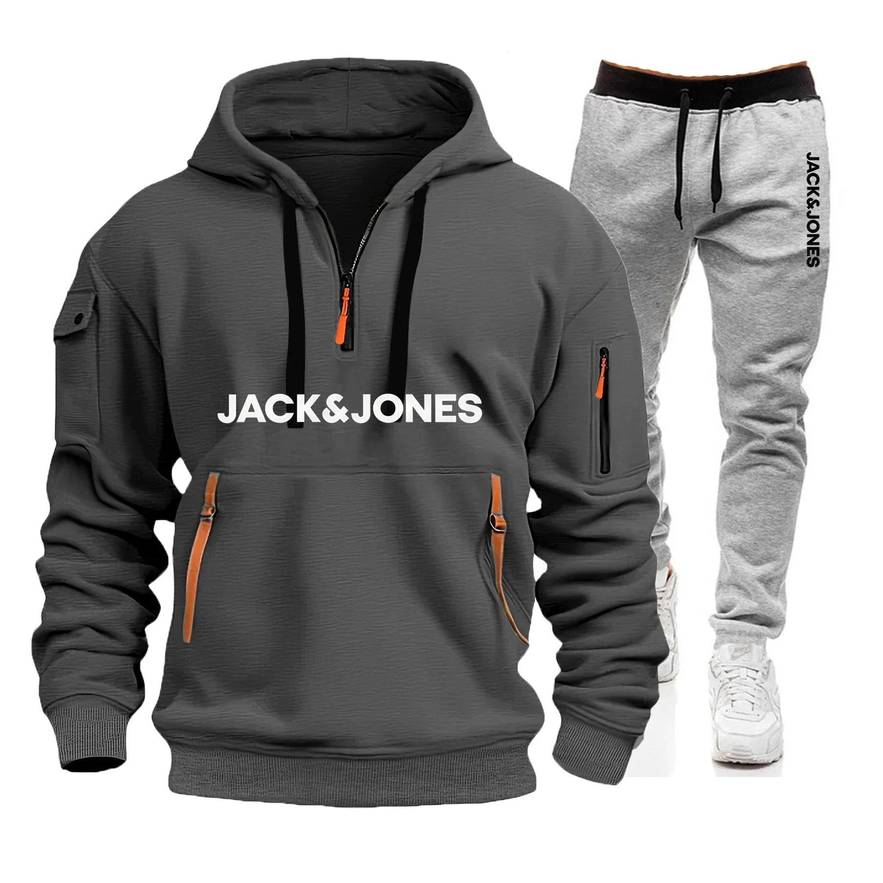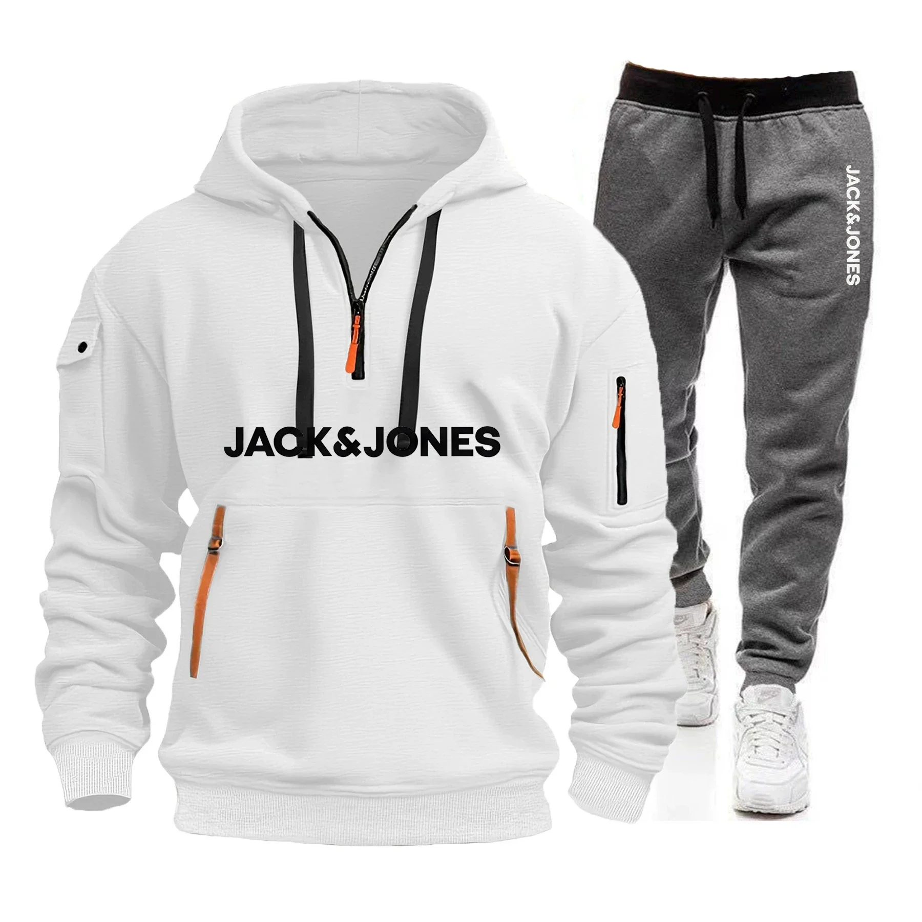 Two sets of men's sportswear for autumn/Winter 2025, including a sweatshirt and two sets of fitness jogging pants with wool caps