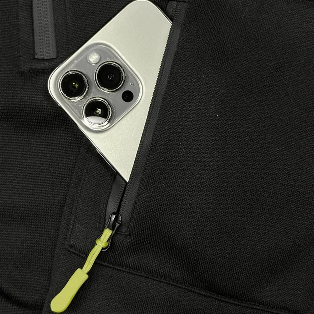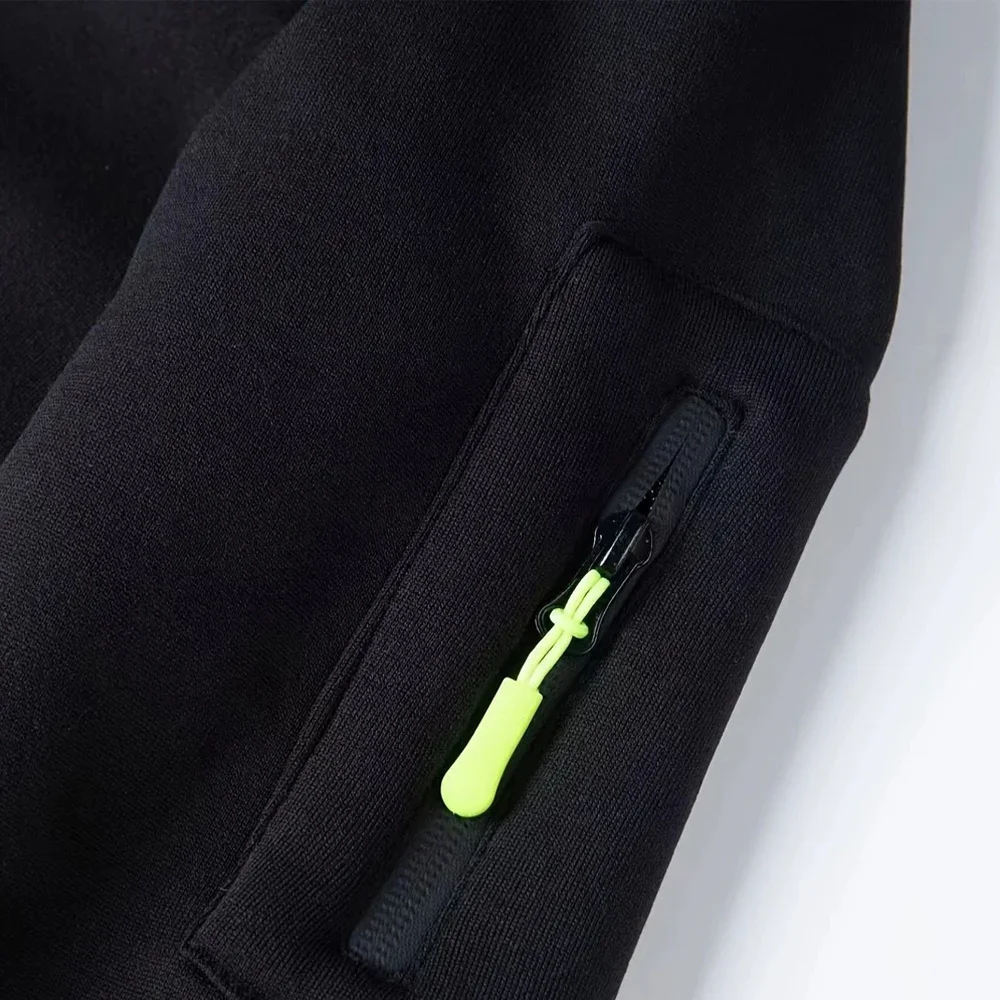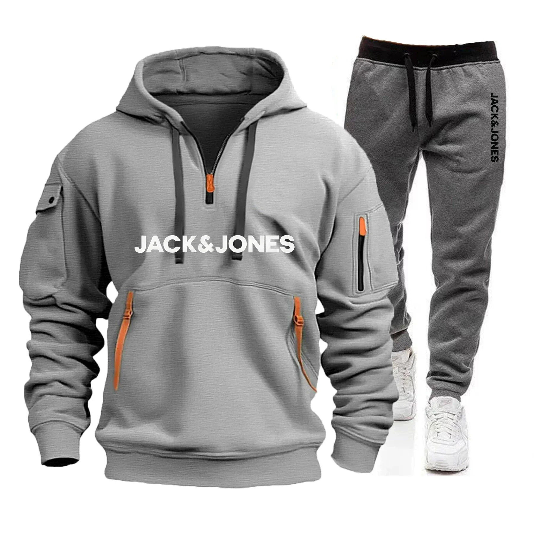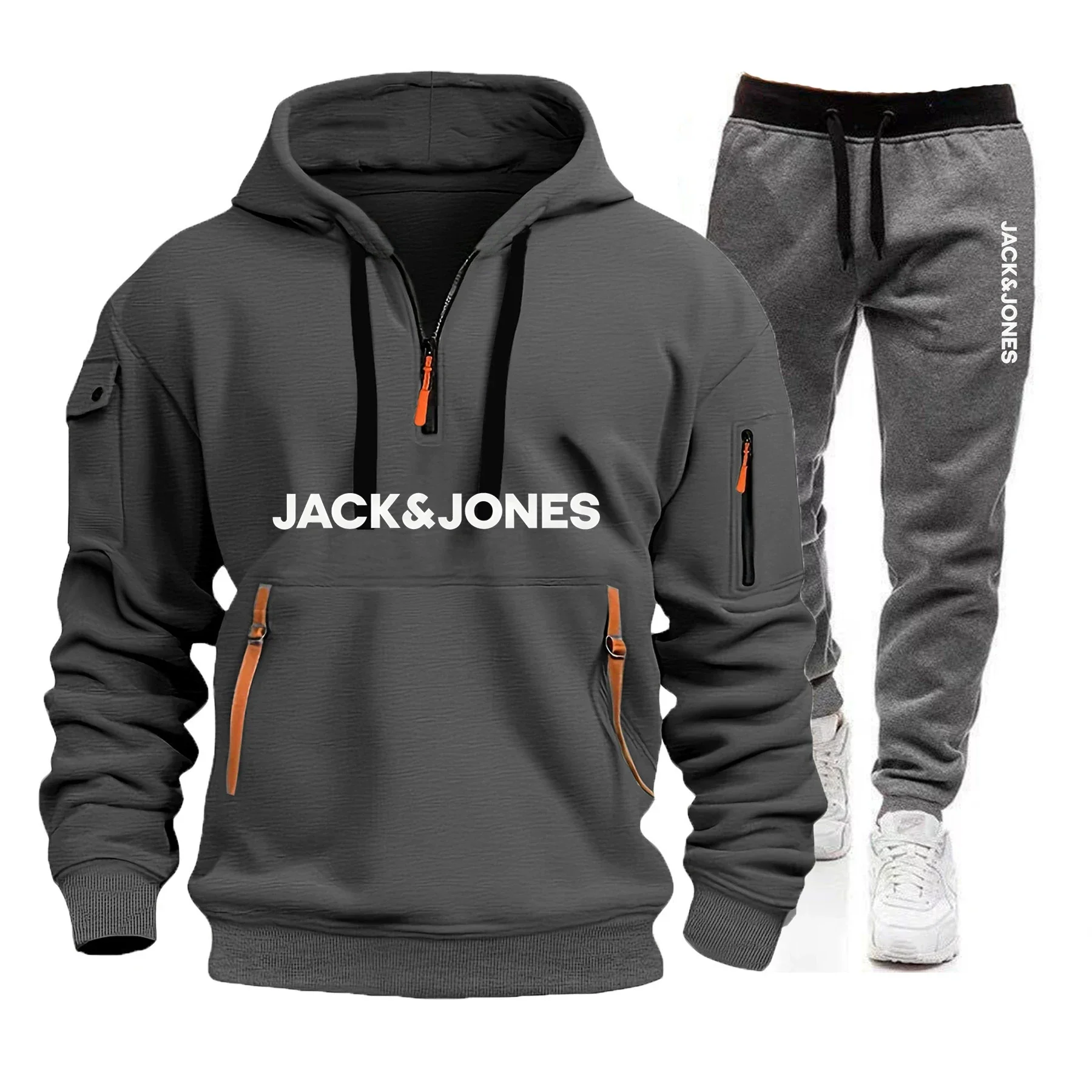 Two sets of men's sportswear for autumn/Winter 2025, including a sweatshirt and two sets of fitness jogging pants with wool caps