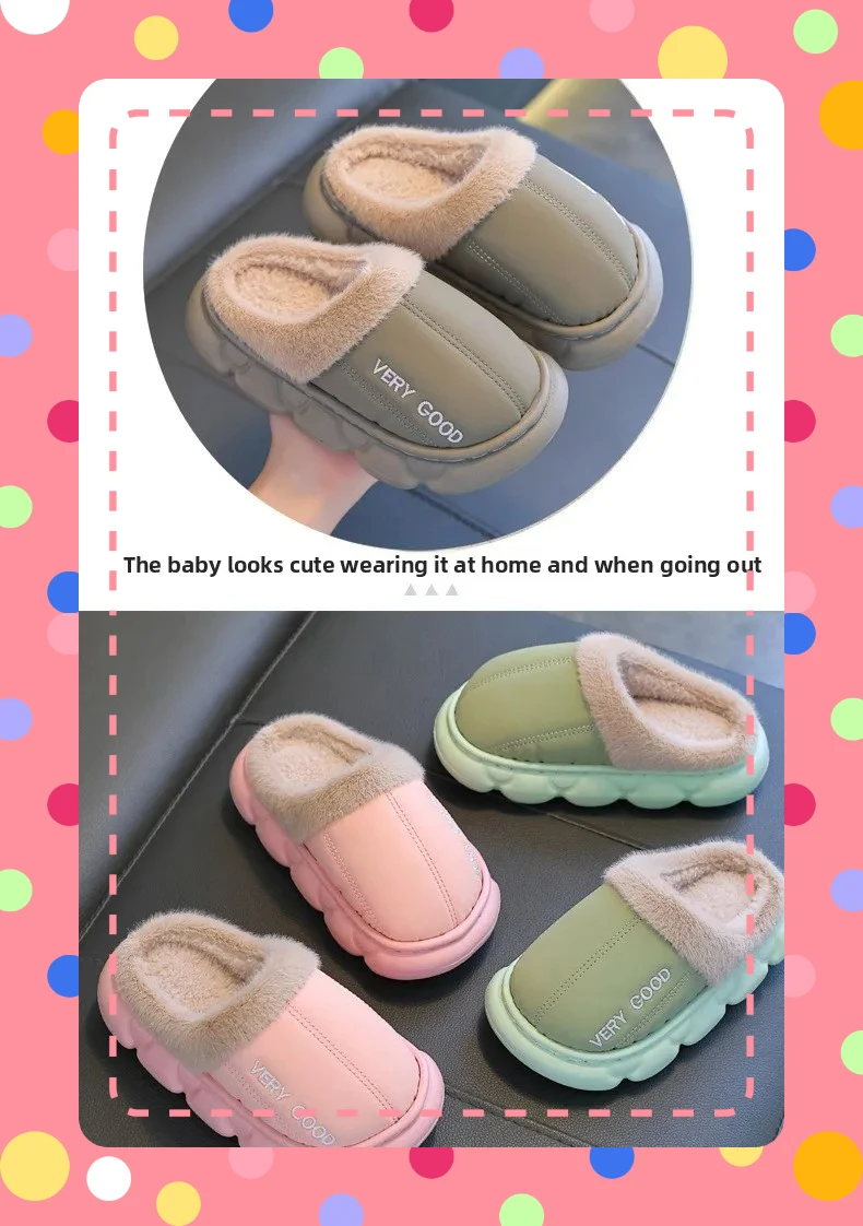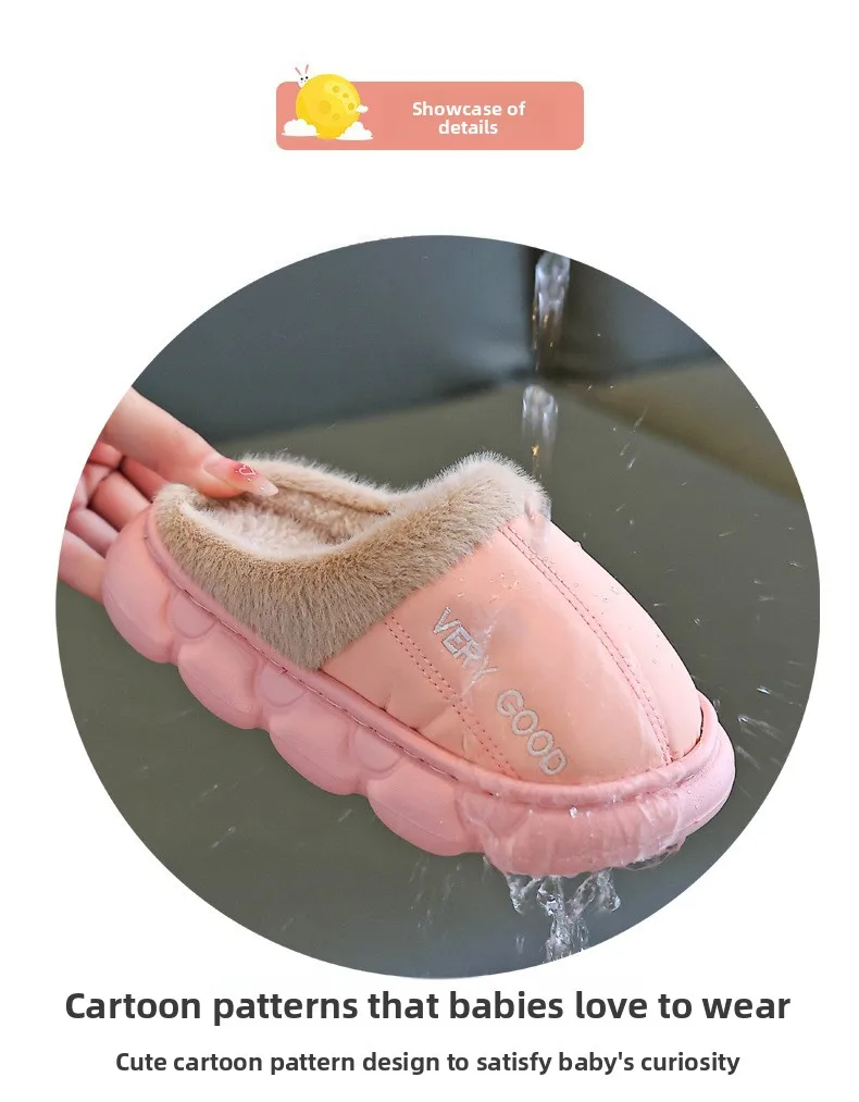 Waterproof Anti-Slip Kids Slippers Winter Warm Plush House Shoes for Boys Girls Indoor Outdoor Home Use