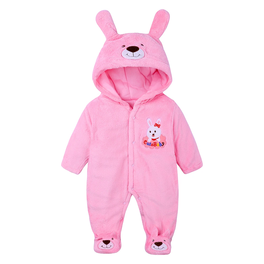 Winter Baby Rompers Plush Newborn Onesie Infant Warm and Thick Cartoon Rabbit Cotton Clothes for 0-2 Years