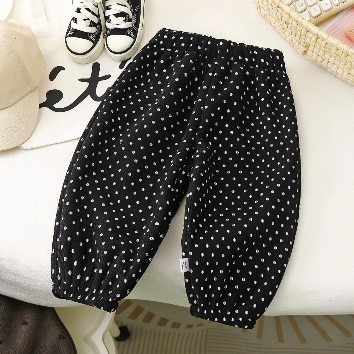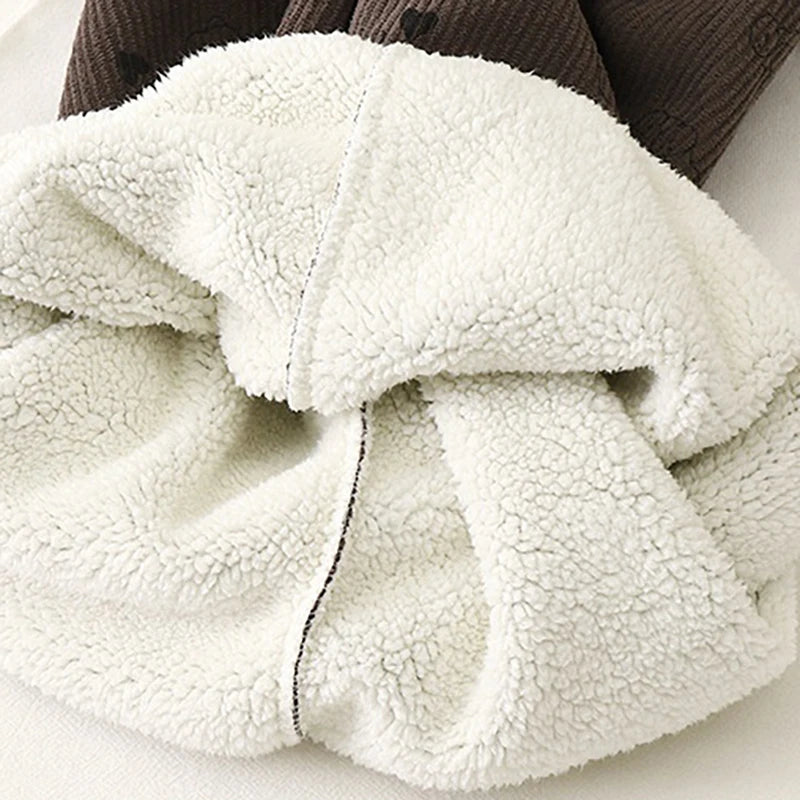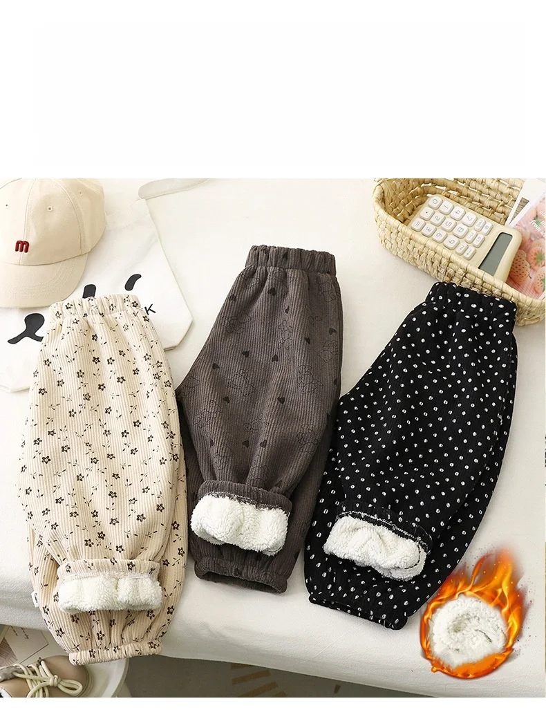 Winter Warm Fleece Lined Kids Pants Printed Toddler Boys Girls Trousers Retro Polka Dot Pattern Children's Clothes
