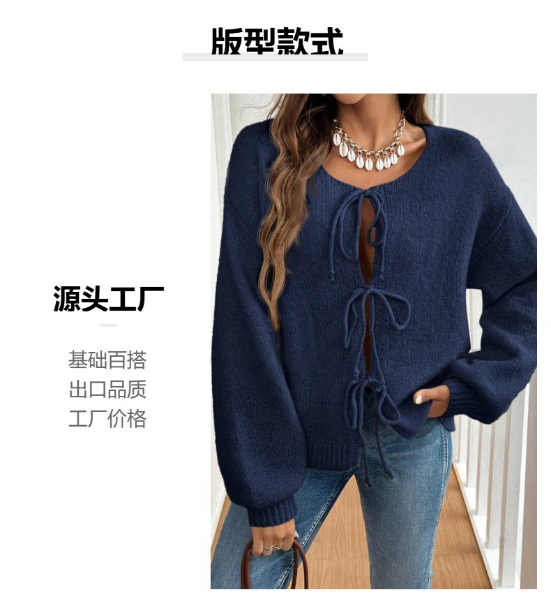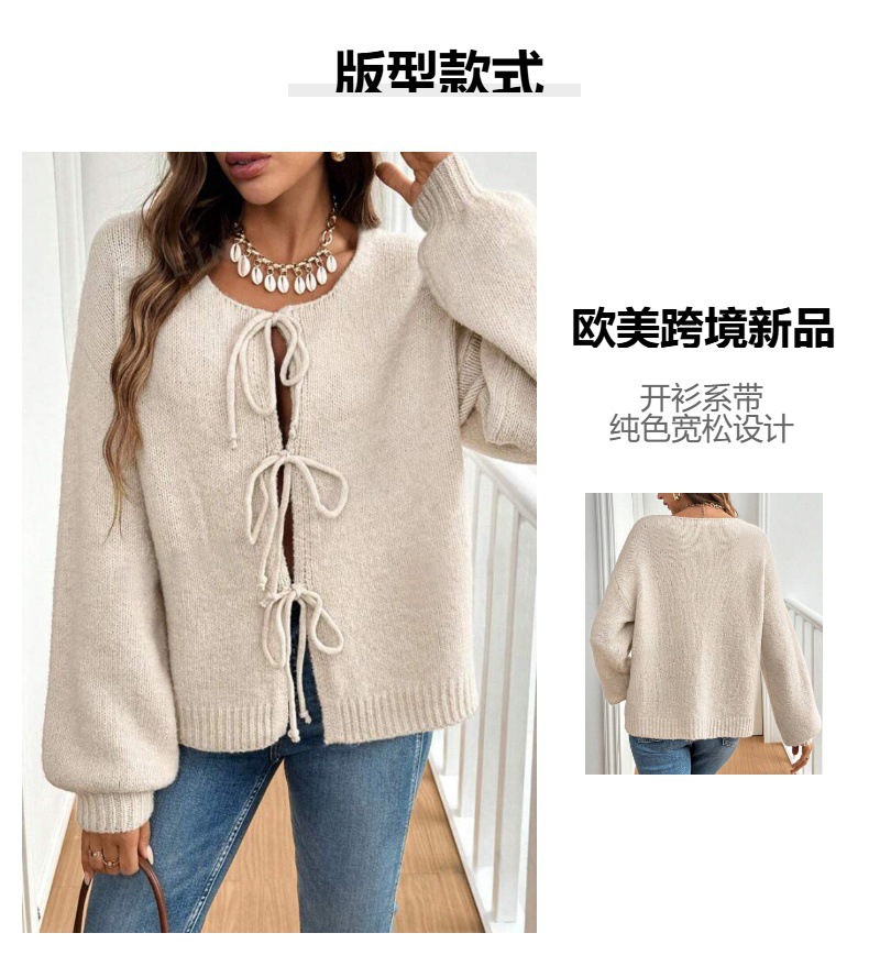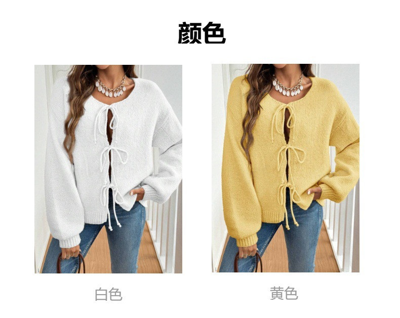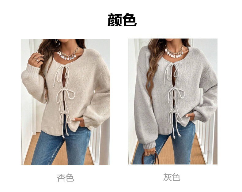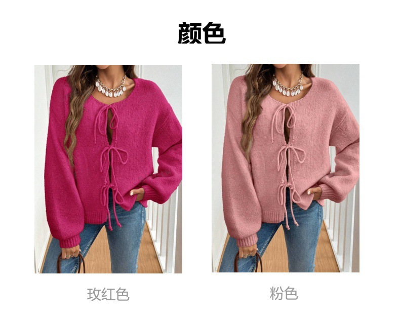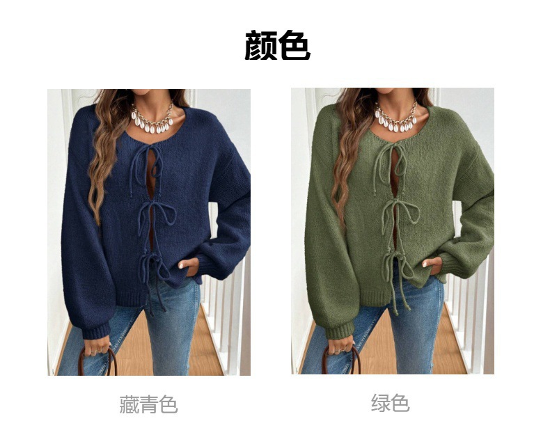 Women Solid Round Neck Lace Up Sweaters Cardigan Splice Knit Straight Jumpers Casual Long Sleeve Office Lady Autumn Winter