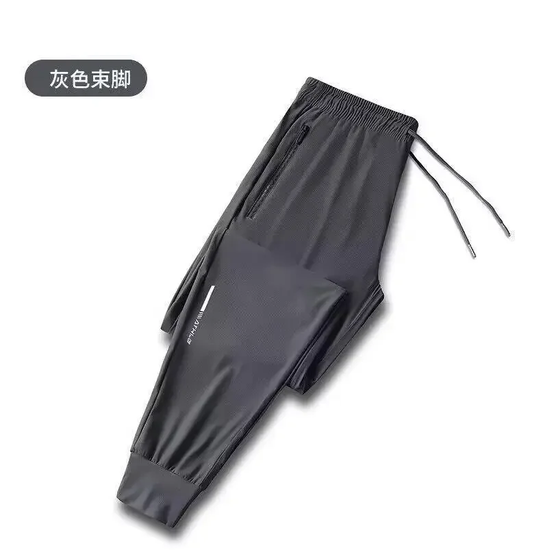 Women's Spring Summer Thin Ice Silk Pants Comfortable Breathable Casual Elastic Beam Feet Pants Slim Sports Fitness Trousers